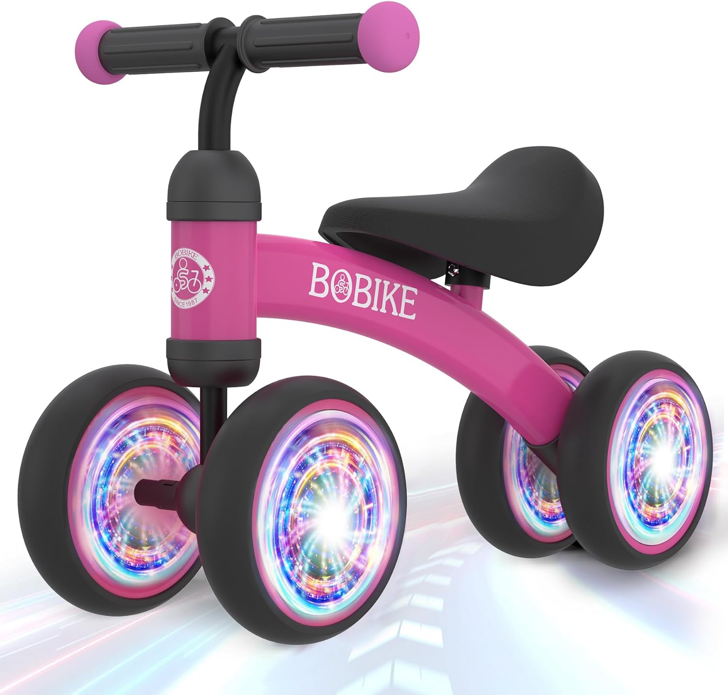 Baby Balance Bike Toys for 12-36 Months Kids Toy Boy and Girls Gifts Toddler Best First Birthday Gift Children Walker No Pedal Infant 4 Wheels Bicycle (Colorful, Rose Red-Light)