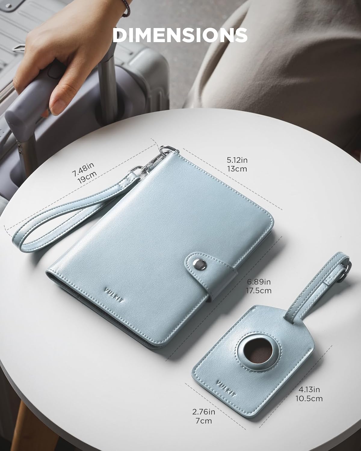 - Complete Travel Set with Airtag-Compatible Luggage Tag: With your purchase, you’ll receive a feature-packed travel wallet with wrist strap and a detachable luggage tag designed with an Airtag slot. No more worries about lost passports or baggage—attach the tag securely to the passport holder or your luggage, and track it easily using the Find My app. Note: Airtag not included