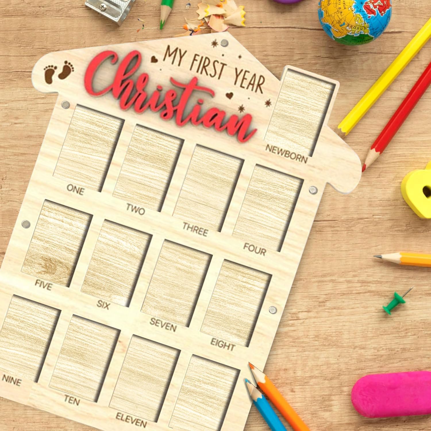 - My First Year Photo Frame: Capture your baby’s first year with our babys first year picture frame. This baby first year photo frame helps you record their growth from newborn to one year, showcasing each milestone in a 12 month picture frame for baby first year. The wooden plaque includes space for your baby’s full name, making it a personalized keepsake. Our 12 month pictures for baby first year, my first year photo board, one year photo board is a wonderful way to celebrate these moments.