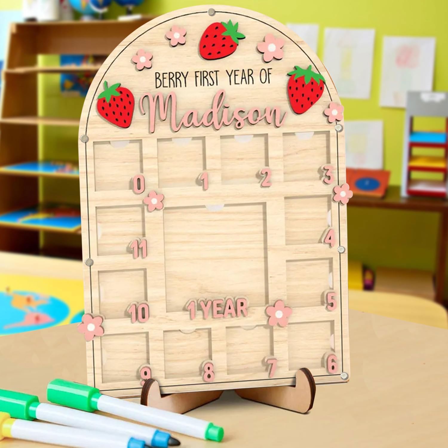 - My First Year Photo Frame: Capture your baby’s first year with our babys first year picture frame. This baby first year photo frame helps you record their growth from newborn to one year, showcasing each milestone in a 12 month picture frame for baby first year. The wooden plaque includes space for your baby’s full name, making it a personalized keepsake. Our 12 month pictures for baby first year, my first year photo board, one year photo board is a wonderful way to celebrate these moments.