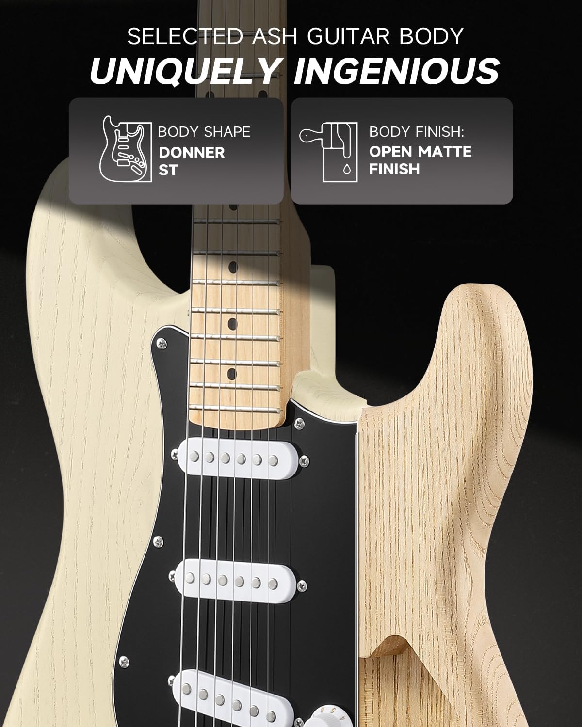- PERFECT FOR ALL, UNIQUE FOR YOU:Whether for kids or adult, beginner or seasoned, this all-inclusive set is the ideal way to kickstart your rock journey. Crafted from premium Manchurian Ash with an open matte finish, each guitar is uniquely beautiful and makes an unforgettable present for any occasion, from Christmas to birthdays