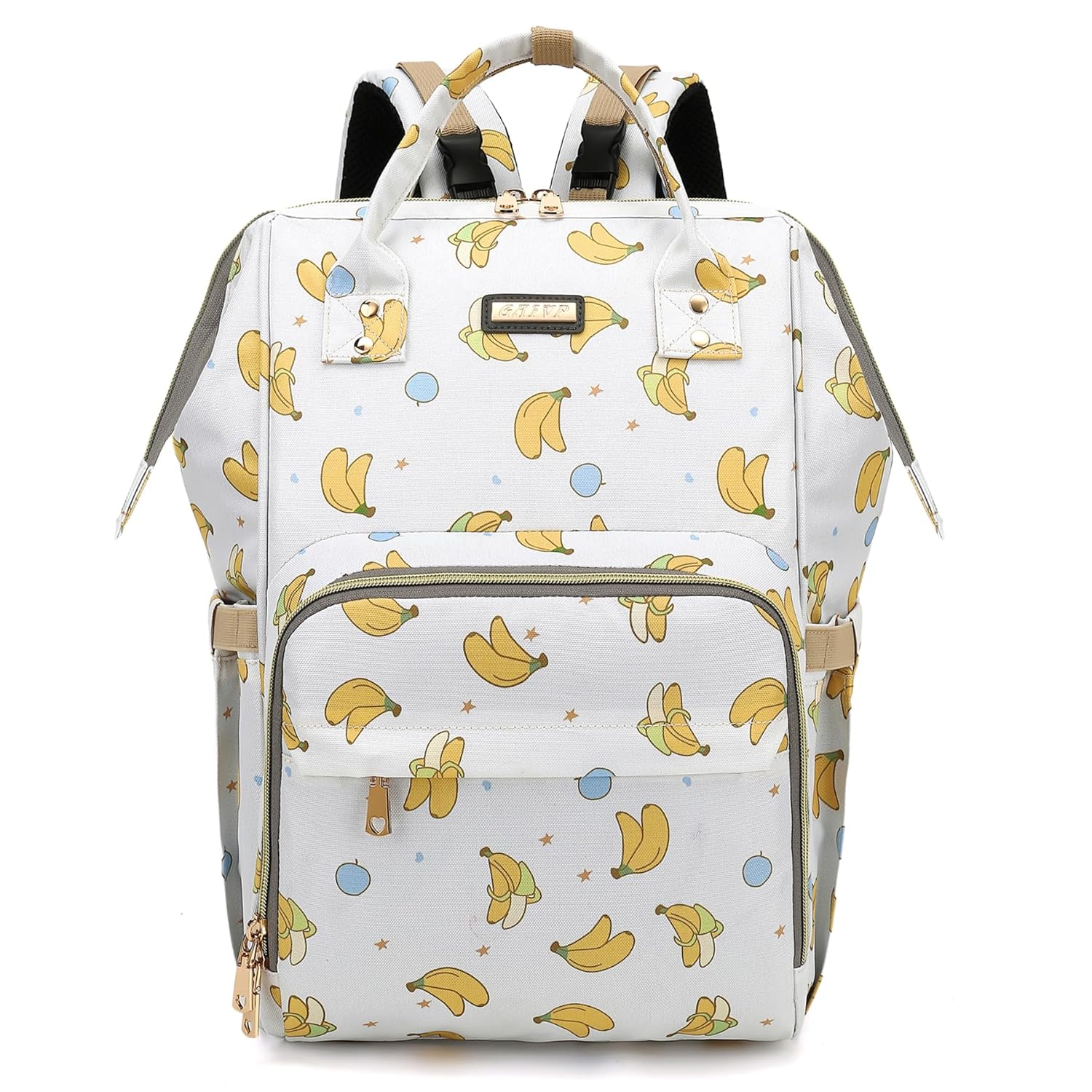 Diaper Bag Backpack, Diaper Bags for Baby Girls Boys, Baby Bags for Moms Dads, Nappy Changing Bag with Insulated Pockets,Multi-functional Waterproof Backpack with Stroller straps -Beige Banana