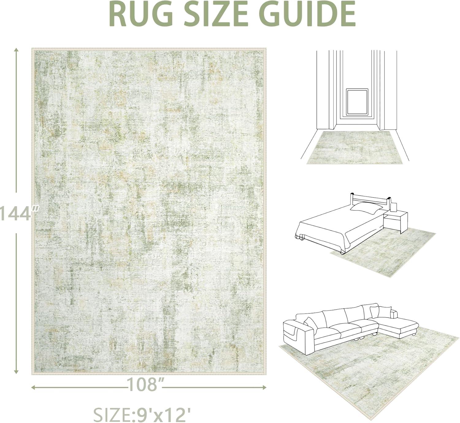 Area Rugs 9x12 Living Room: Washable Rug Modern Abstract Large Rugs Soft Non Slip Neutral Rug Stain Resistant Indoor Carpet for Bedroom Kitchen Dining Room Home Office Rugs(Green Brown,9'x12')