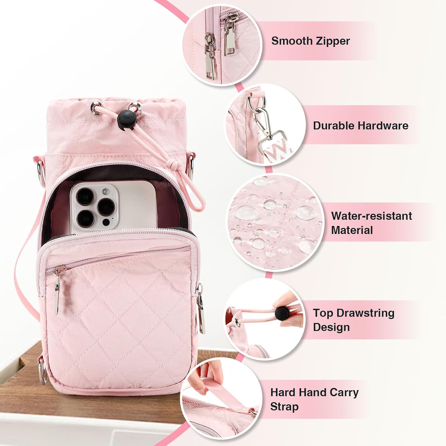 - 【Wear-Resistant Nylon Material & Insulated Interior】This water bottle bag is crafted from high-strength, wear-resistant 600D polyester fabric with a waterproof nylon lining, offering excellent resistance to scratches and tears. The sling bag with water bottle holder features fine craftsmanship, reinforced stitching, and a durable strap, ensuring long-lasting performance even with extended use. Its quality insulation also keeps drinks hot or cold at ideal temperatures.