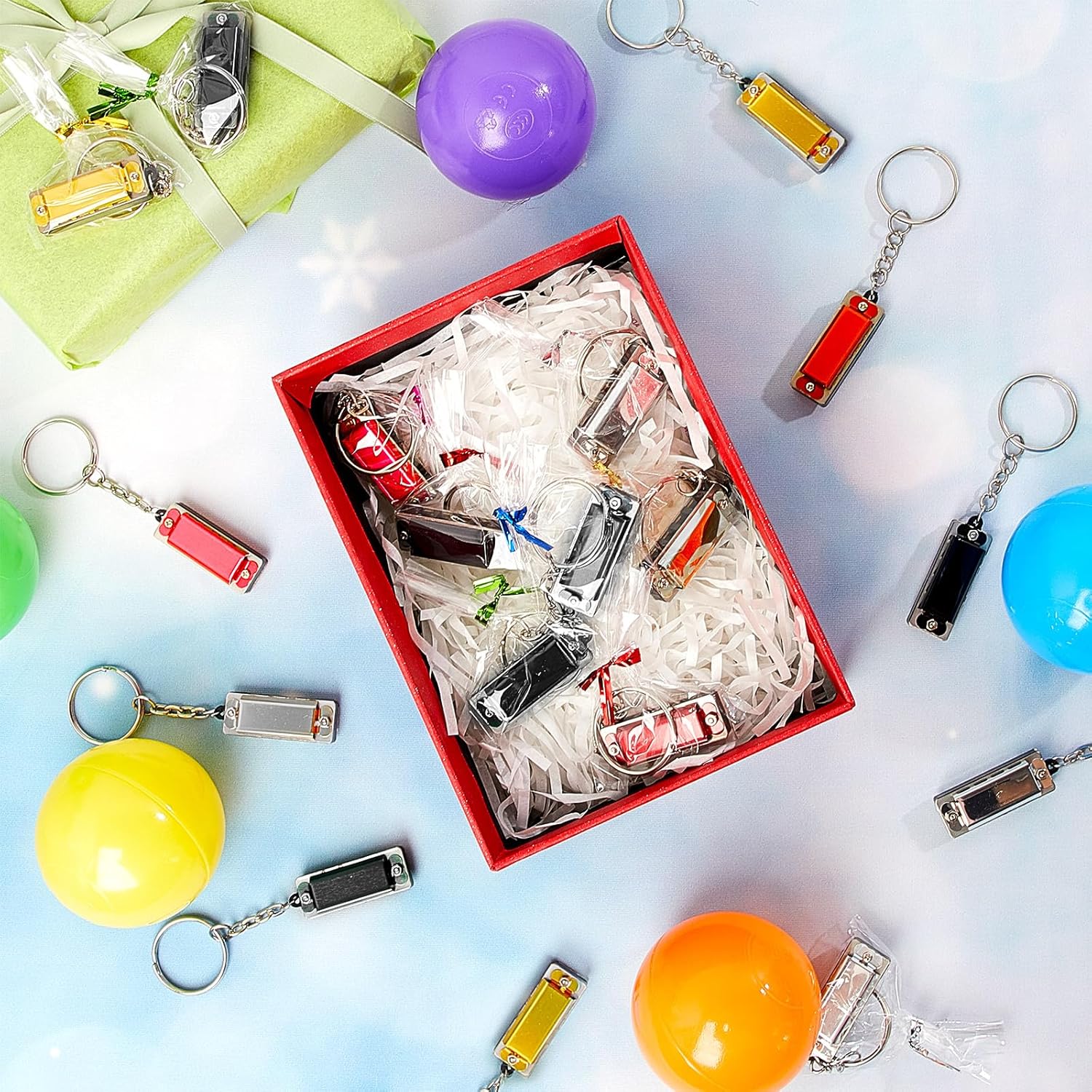 Ecally 32 Pcs Mini Harmonica Keychain for Kids Operation Christmas Favors Portable Wind Instruments 4 Holes 8 Tunes Harmonica Music Party Favors Cute Music Keychain Accessory (Classic Color)