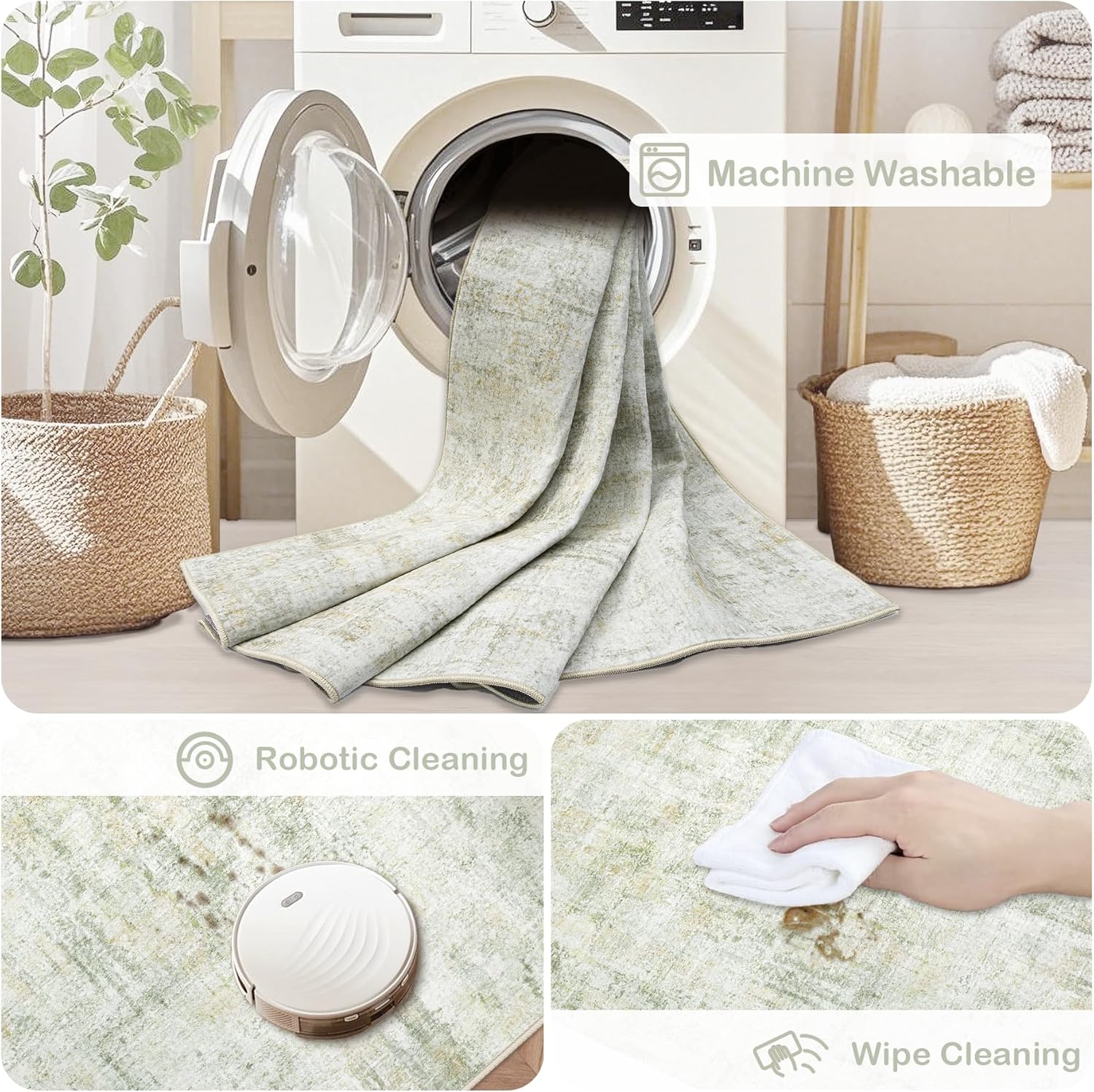 Area Rugs 8x10 Living Room: Washable Rug Modern Abstract Large Rugs Soft Non Slip Neutral Rug Stain Resistant Indoor Carpet for Bedroom Kitchen Dining Room Home Office Rugs(Green Brown,8'x10')