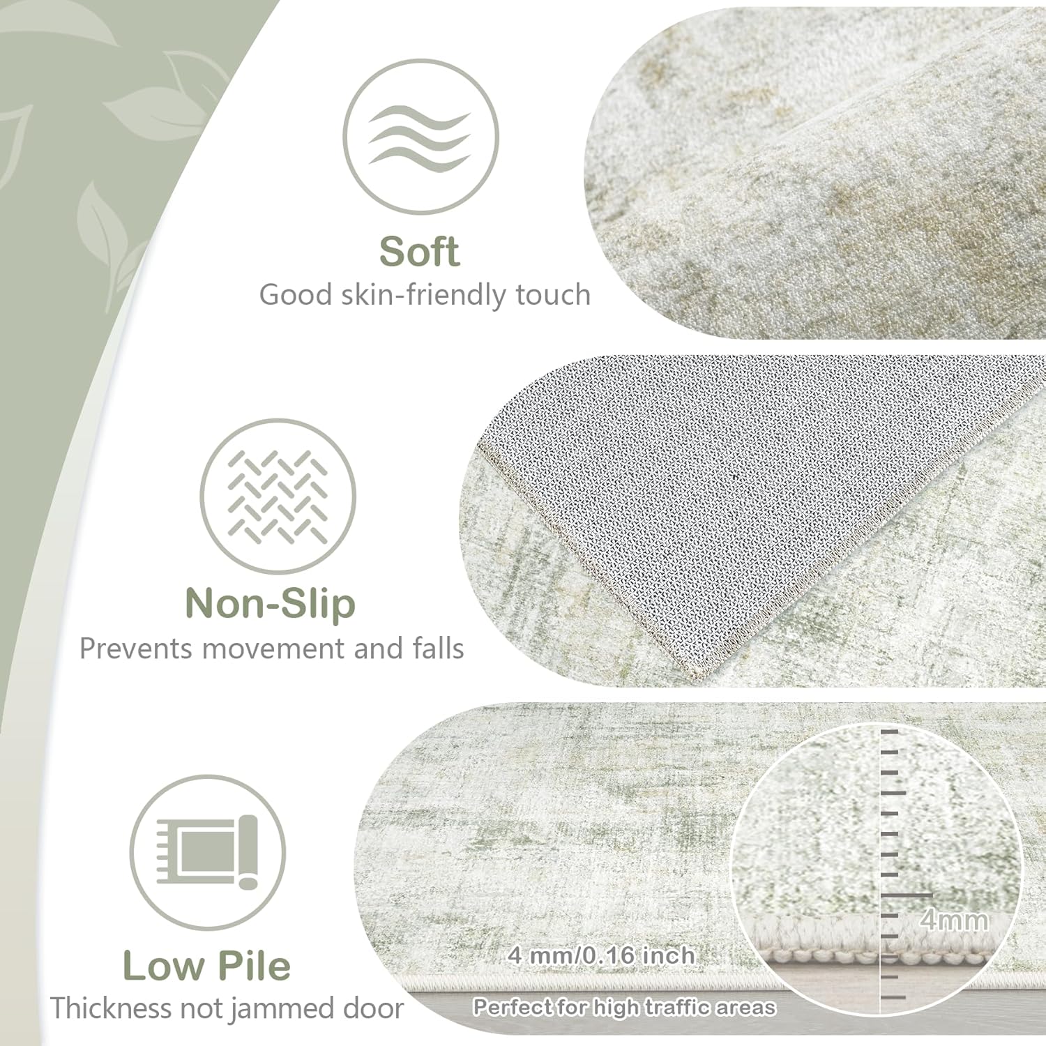 Area Rugs 5x7 Living Room: Washable Rug Modern Abstract Rugs Soft Non Slip Neutral Rug Stain Resistant Indoor Carpet for Bedroom Kitchen Dining Room Nursery Home Office Rugs(Green Brown,5'x7')