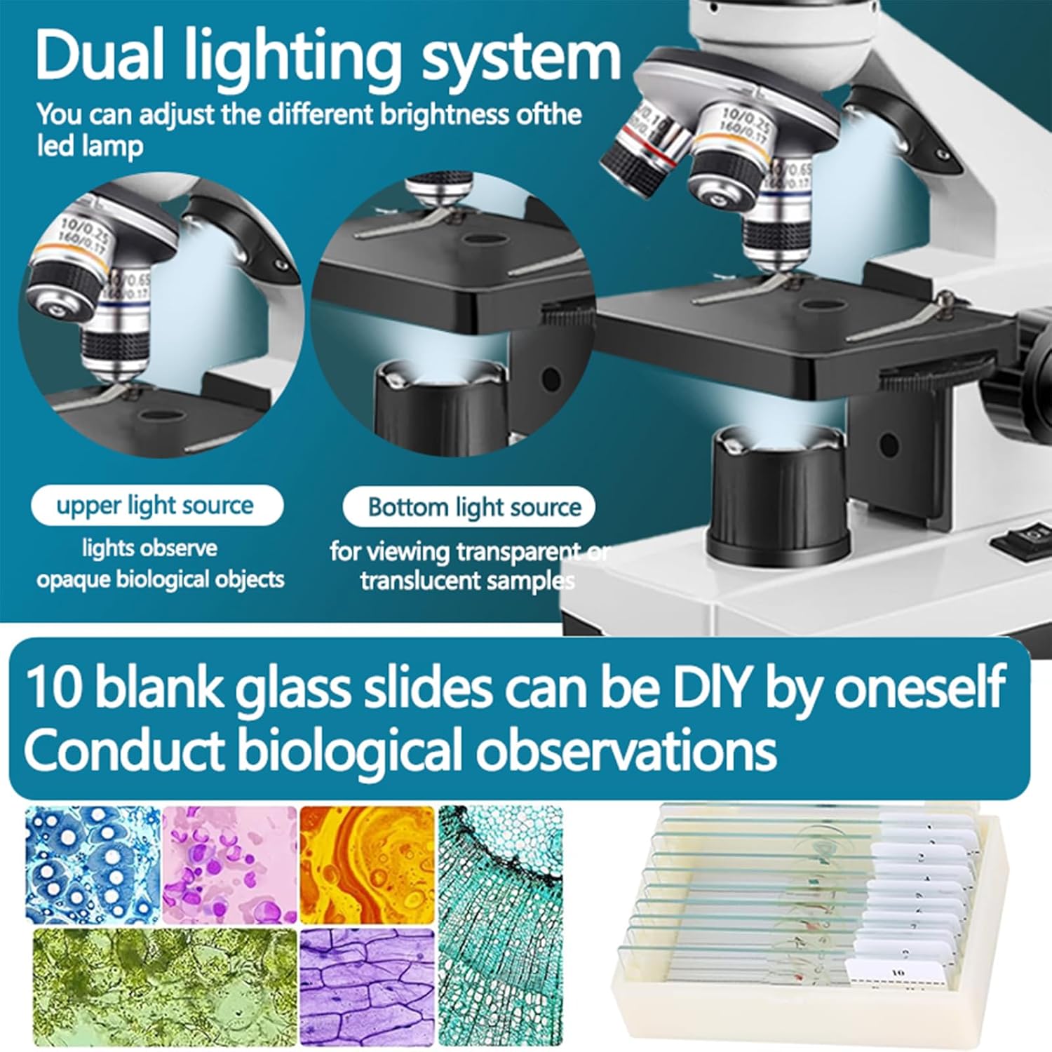 - 【Complete Kit Explore the microscopic world】 The Biological microscope is designed to help students/adult beginners/amateur scientists/hobbyists explore the wonderful world of life bioscience