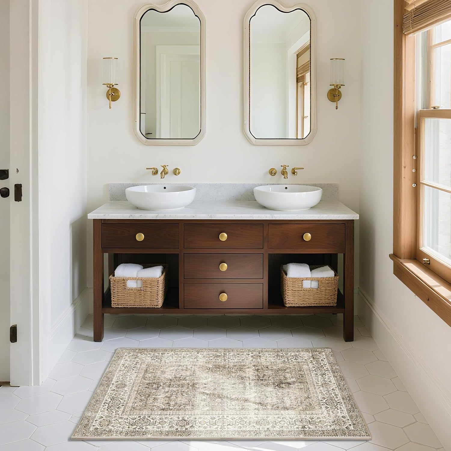 Machine Washable Small Rugs for Kitchen: Door Mat Indoor Entrance 2x3 Throw Rug Stain Resistant Non-Slip Low Pile Soft Carpets for Entryway Front Door Indoor Entrance Entry Bedroom
