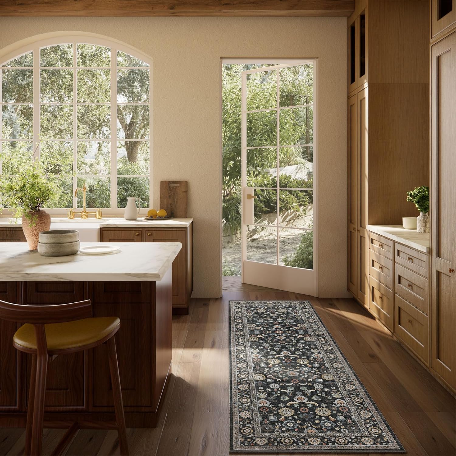 Washable Runners for Hallways Kitchen Rug: 2'6"x8' Runner Rugs Stain Resistant Non Slip Low Pile Boho Carpet Runners for Hallways Bedroom Entryway Indoor Beside Bathroom Laundry Room