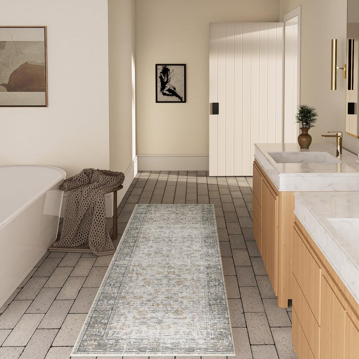 Washable Kitchen Rug Runners for Hallways: 2'x10' Bedroom Rug Non Slip Low-Pile Stain Resistant Soft Indoor Floor Carpet Runner for Indoor Entryway Hallways Kitchen Laundry Room Beside Farmhouseb