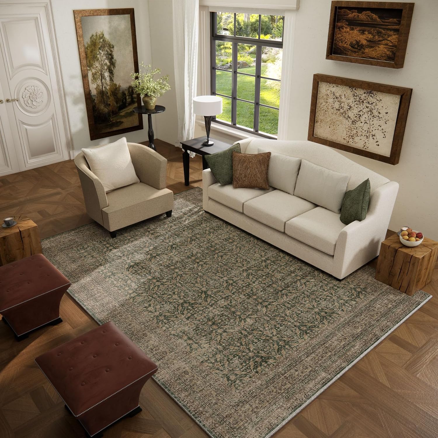 Machine Washable Rugs for Living Room: 5x7 Area Rugs Boho Vintage Rugs Stain Resistant Non Slip Low Pile Soft Lightweight Carpet for Bedroom Kitchen Dining Room Nursery Kids Room Farmhouse