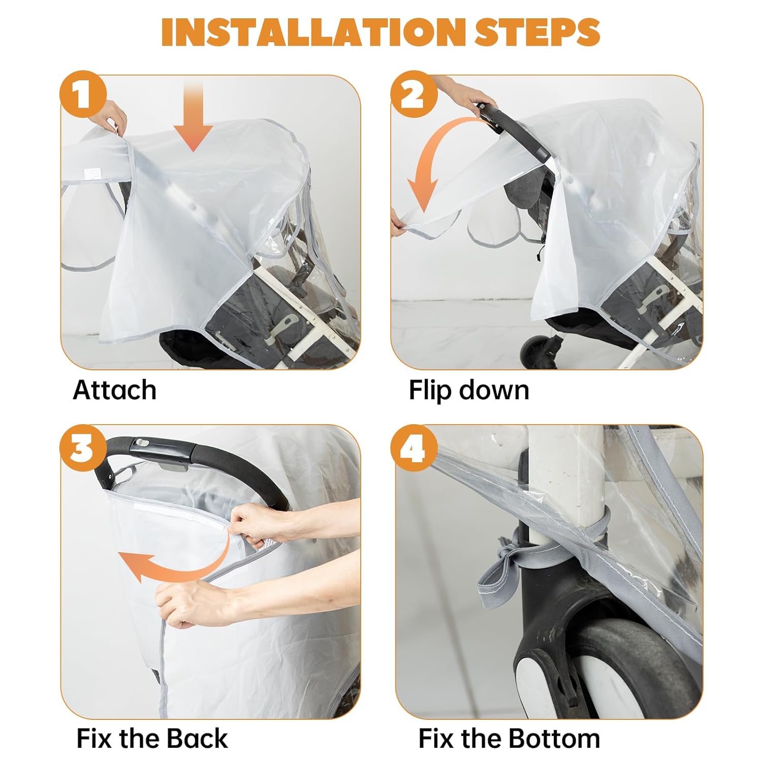 - Easy to Use:You can quickly install the rain cover with simple straps.Moreover,the stroller accessories compatible with Graco can be folded up in the stroller basket easily