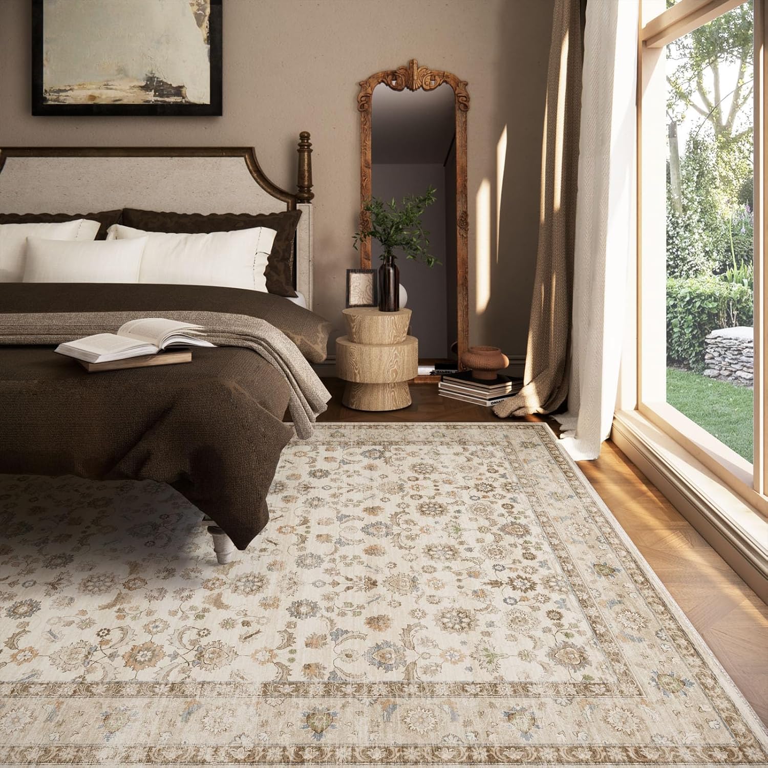 Washable Area Rugs for Living Room: 8x10 Bedroom Rug Boho Vintage Area Rug Stain Resistant Non Slip Low Pile Lightweight Soft Carpets for Dining Room Kitchen Nursery Kids Room Playroom Home Office