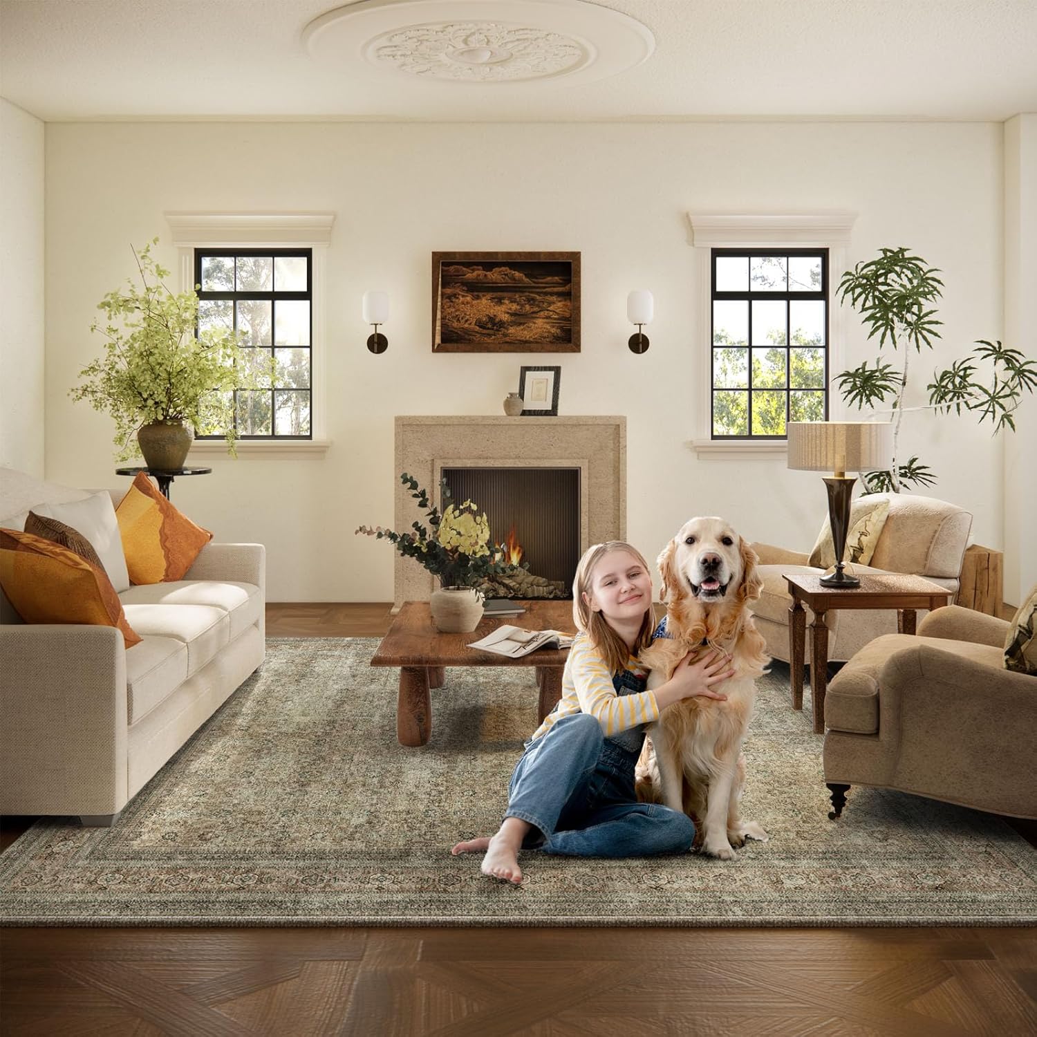 Washable Area Rugs for Living Room: 5x7 Bedroom Rug Boho Vintage Rugs Stain Resistant Non Slip Low Pile Lightweight Soft Carpets for Dining Room Kitchen Nursery Kids Room Farmhouse Living Room