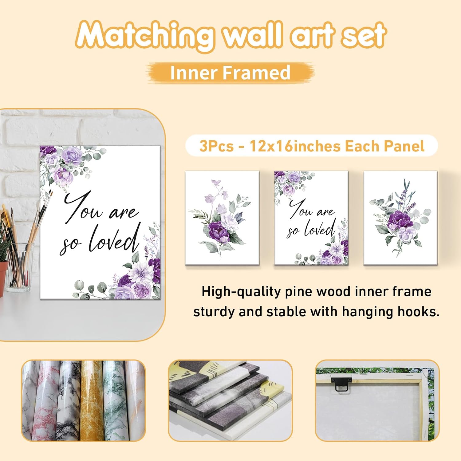 Personalized Baby Bedding Set - 5 Pcs Custom Toddlers Bedding Set with Infant Name - Soft Double Layer Nursery Crib Set for Girls Boys - Customized Infant Gifts for Baby Shower - Purple Flowers