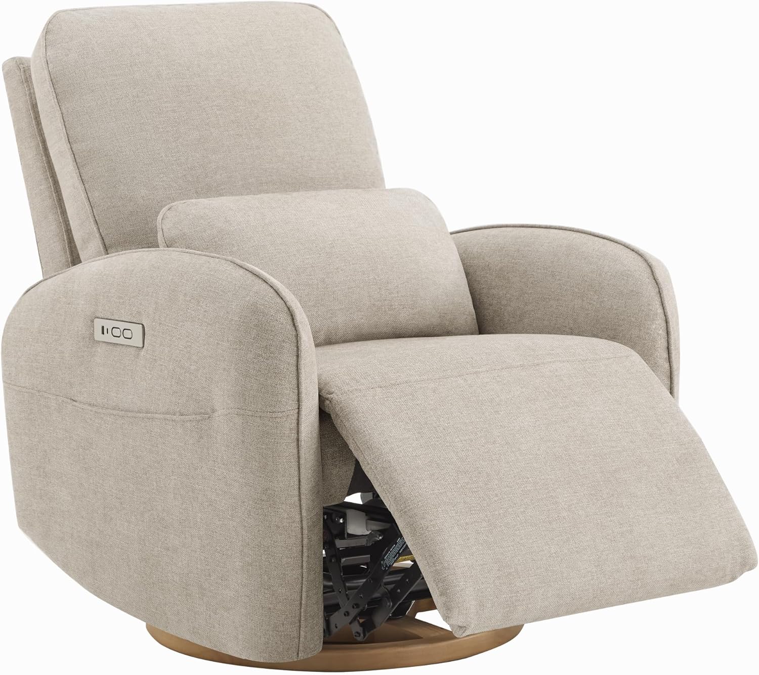 CHITA Power Nursery Glider Recliner Chair, Electric Swivel Rocker Recliner for Adults, Rocking Chair with Removable Lumbar Pillow for Living Room, FSC Certified, Fabric in Khaki