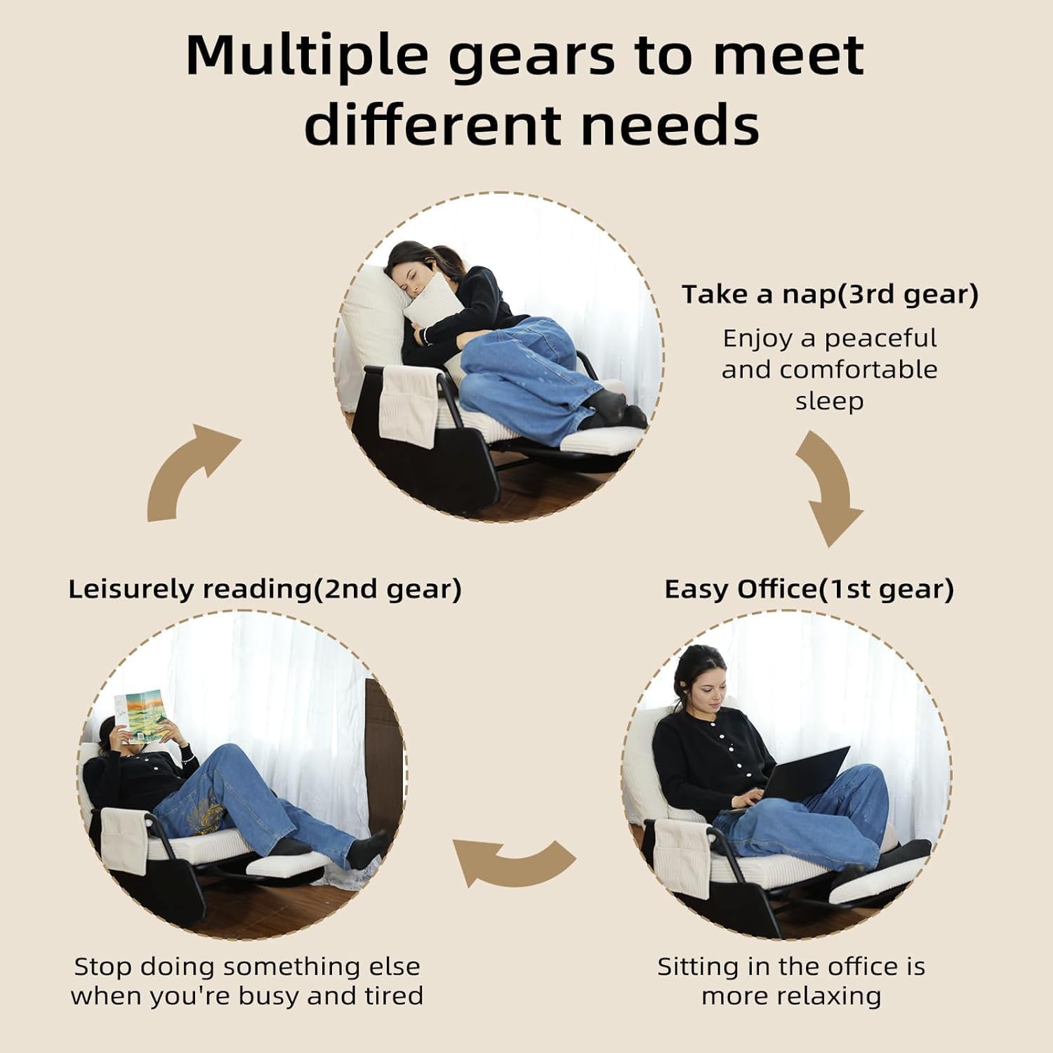 - Ergonomic Design with Three Adjustable Levels: The glider rocking chair is meticulously designed with ergonomic principles to protect your spine. The three adjustable settings cater to all your needs. It also features an optimized rocking motion, providing a more comfortable and stable experience