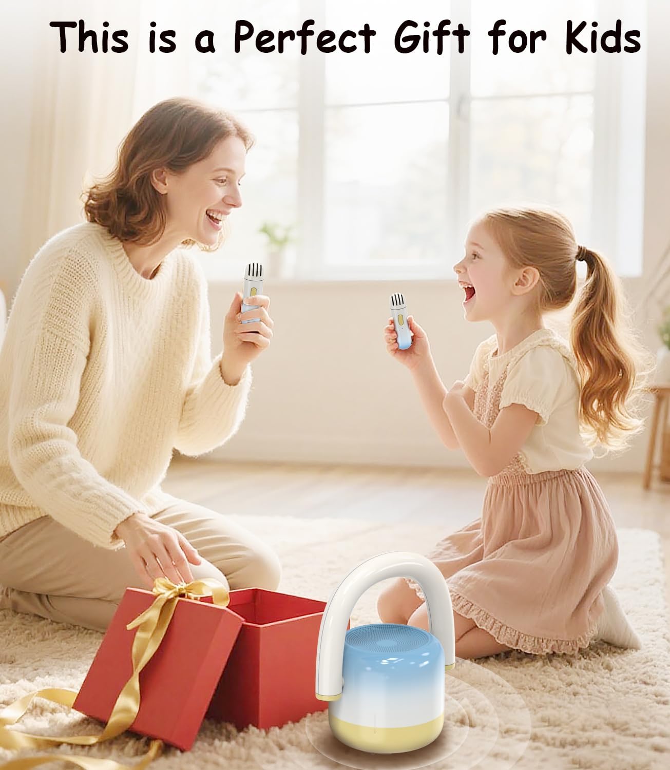- 【Compact & Portable】: Wireless Karaoke Machine featuring a convenient carry handle, breaks away from bland designs. The ultra-compact size (less than half the volume of other mini microphones speaker) lets kids easily take it from their room to the living room, backyard, or anywhere outdoors—singing fun on the go