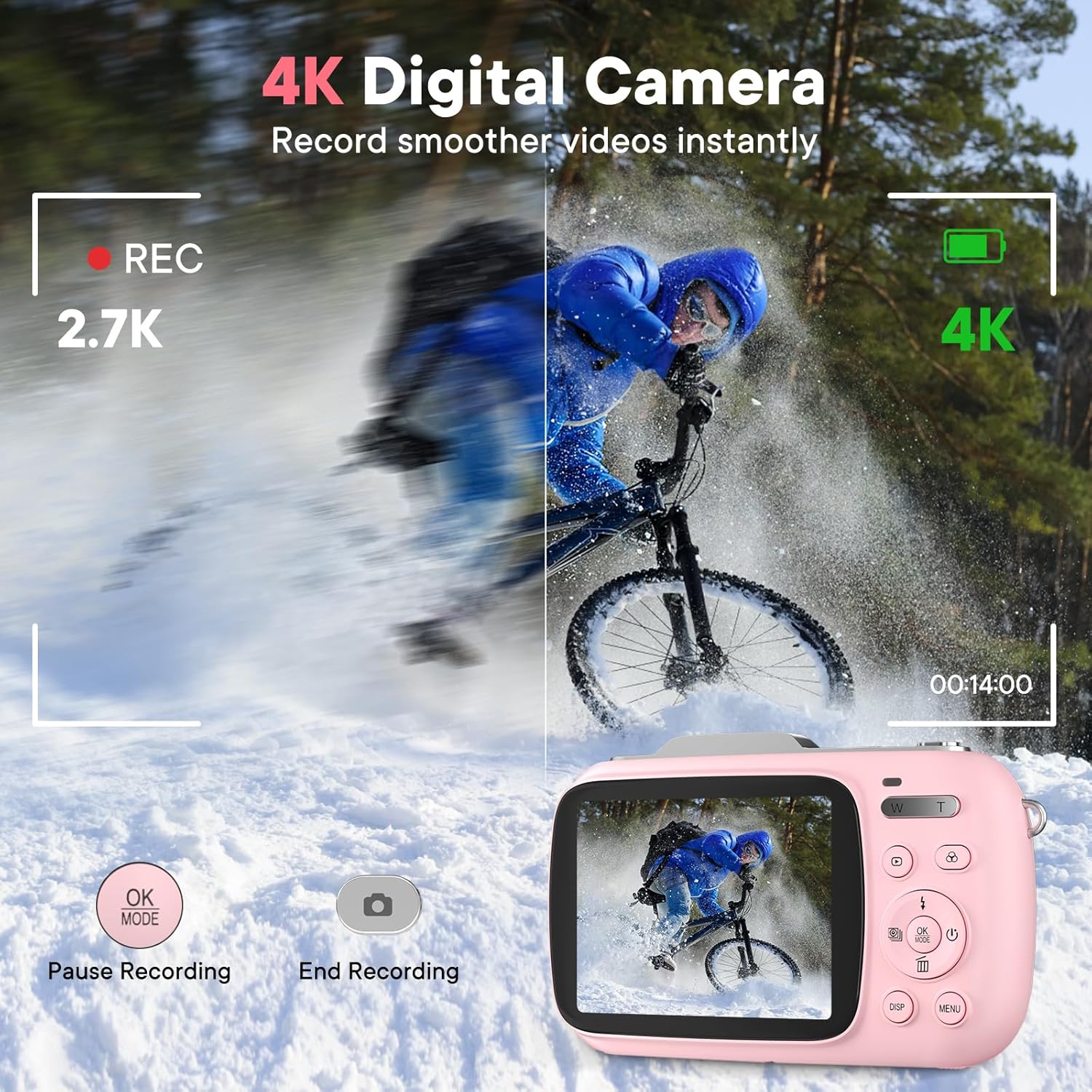 - 【SHOOT DECENT IMAGES WITH EASE】 - The digital camera captures high-clarity FHD 4K videos and 64MP photos with the newest CMOS metering system, no need for complicated manual settings while delivering natural color images automatically. One second to press the shutter, it's easy for starters and kids.