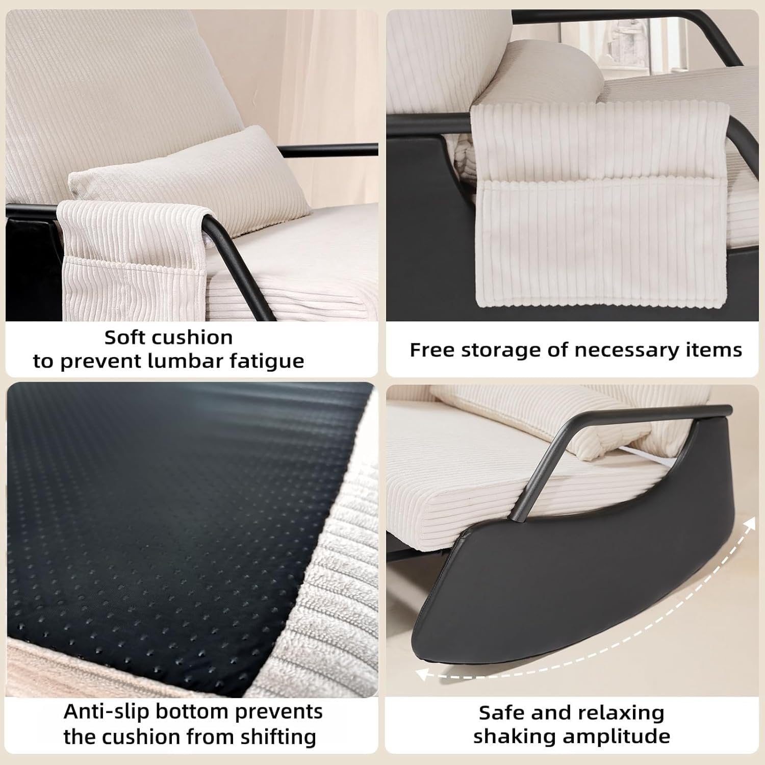 - Premium Weight Capacity & Comfortable Fabric and Padding: The nursery rocking chair is made with ultra-comfortable corduroy fabric and filled with memory foam for a double layer of relaxation for both your skin and body. The base is also equipped with anti-slip material to prevent sliding
