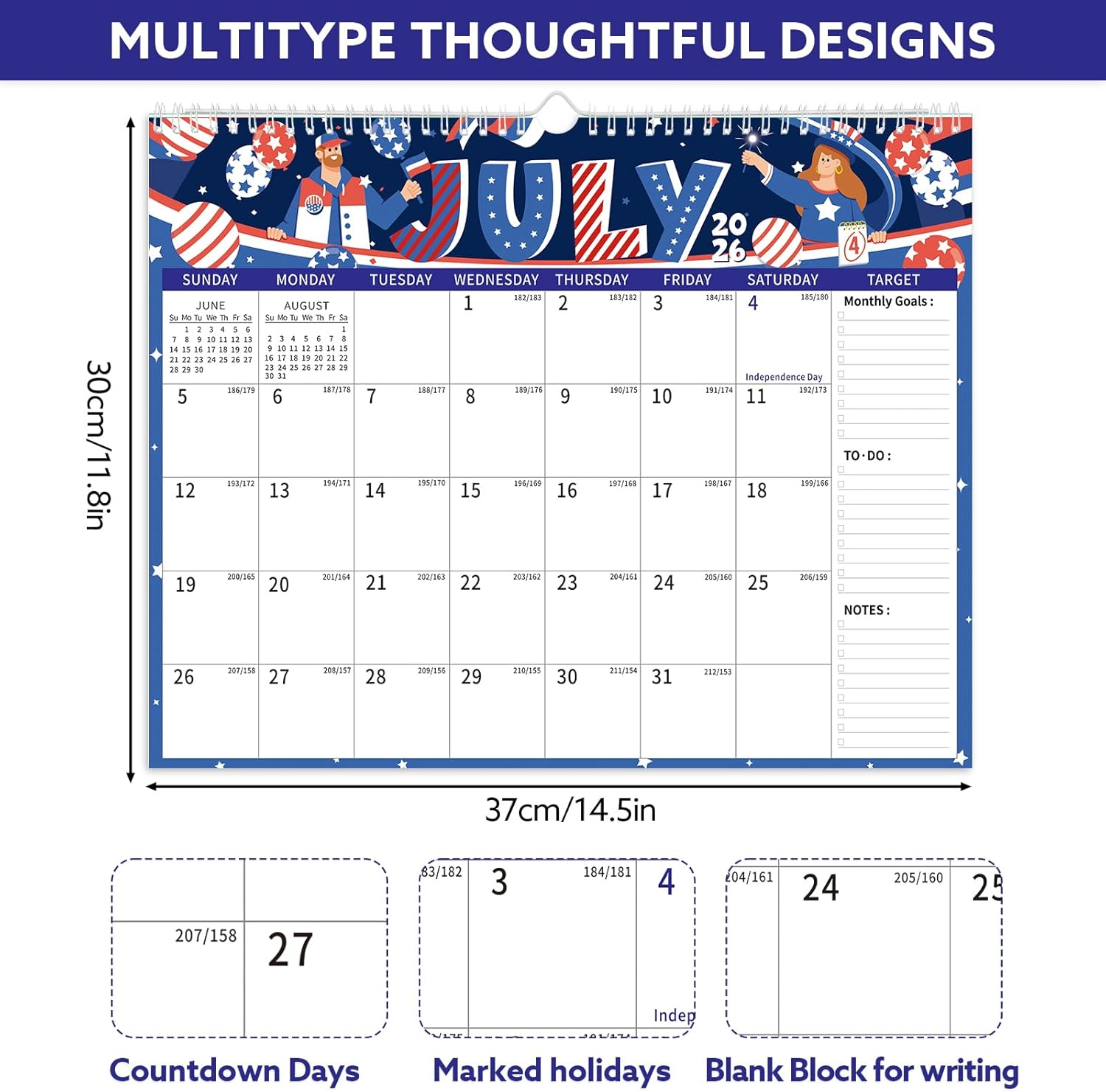 - 【18 Month Calendar】The 2026-2027 wall calendar covers from January 2026 to June 2027. The family calendar not only serves as a planning tool but also as a wall decoration for your home, office or classroom.