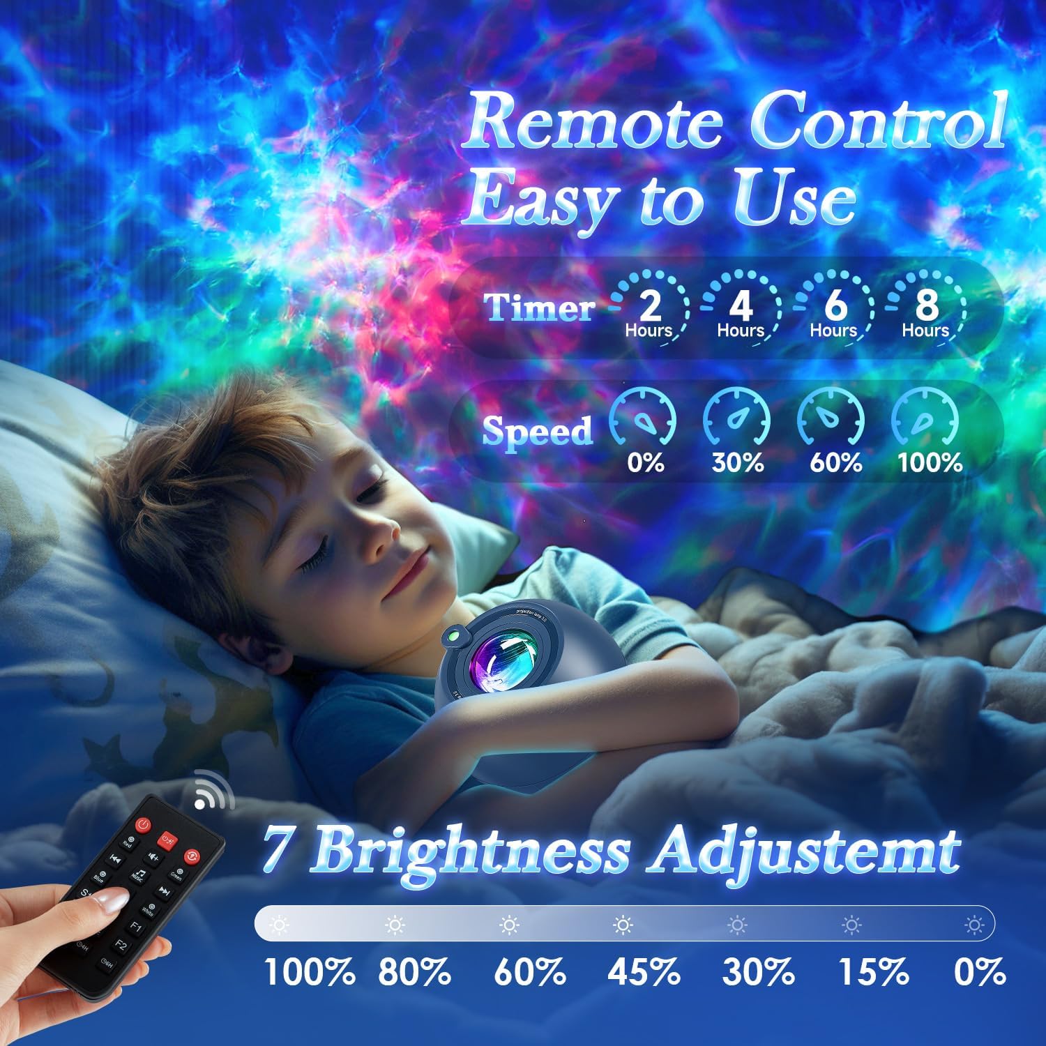 - 【GALAXY PROJECTOR 3.0 UPGRADED-WIDER COVERAGE+MORE LIGHTING PATTERNS】Galaxy projector for bedroom & star projector galaxy light projector for bedroom comes with 15 colors, 6 brightness levels, and 4 light moving speeds, providing 360 lighting patterns. The galaxy projector & star lights for ceiling projector nebula projector covers the entire ceiling with cool light. The galaxy projector for bedroom & star projector galaxy light projector for bedroom transforms an ordinary bedroom into a magical wonderland, helping u and yr kids fall asleep faster. The galaxy projector for bedroom & star projector galaxy light projector for bedroom emits beautiful galaxy lights, making u most relaxed.