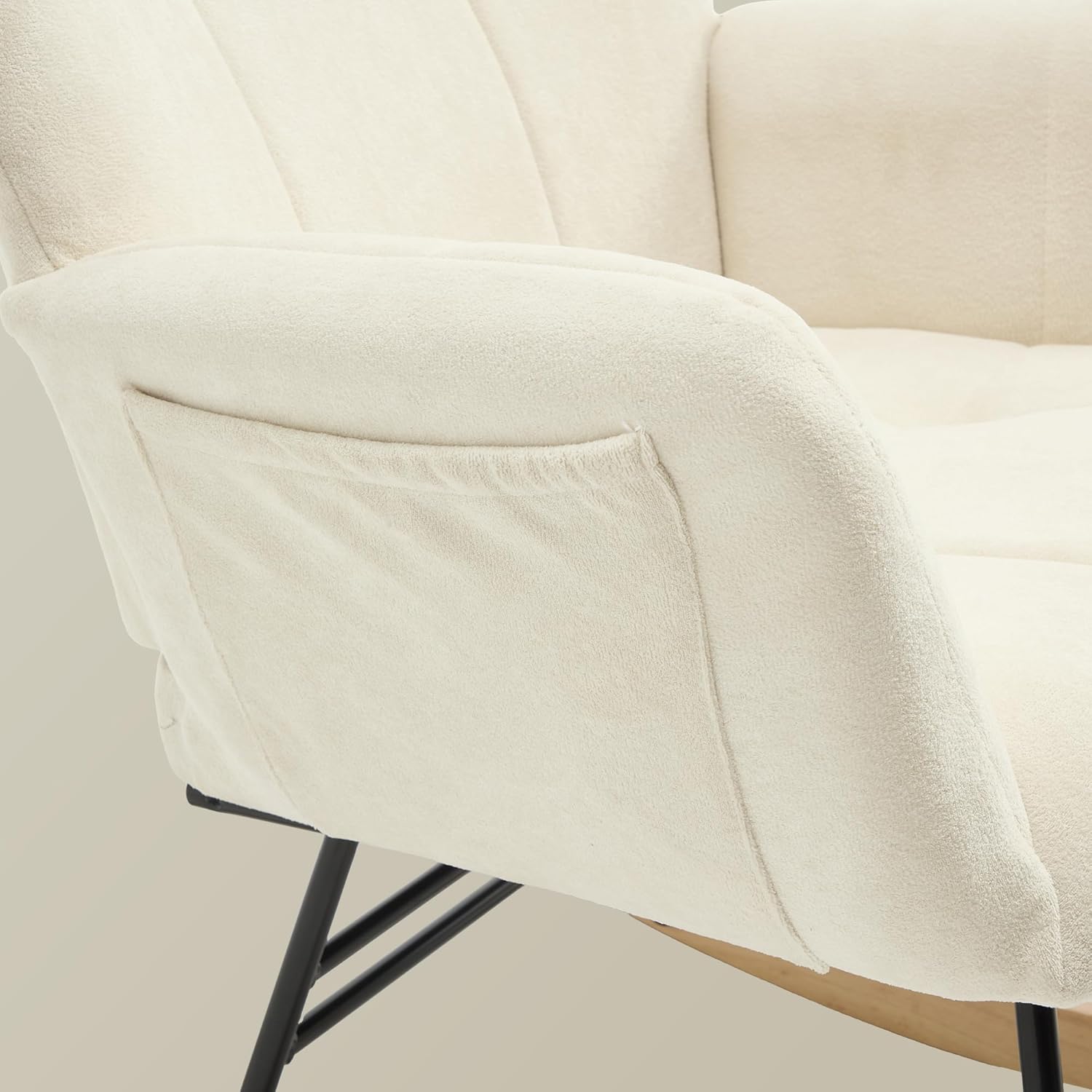 KEEZY Rocking Chair Nursery,Upholstered Glider Chair Padded Seat with High Backrest,Reading Chair,Armchair Comfy Side Chair for Living Room Bedroom Offices (Beige)