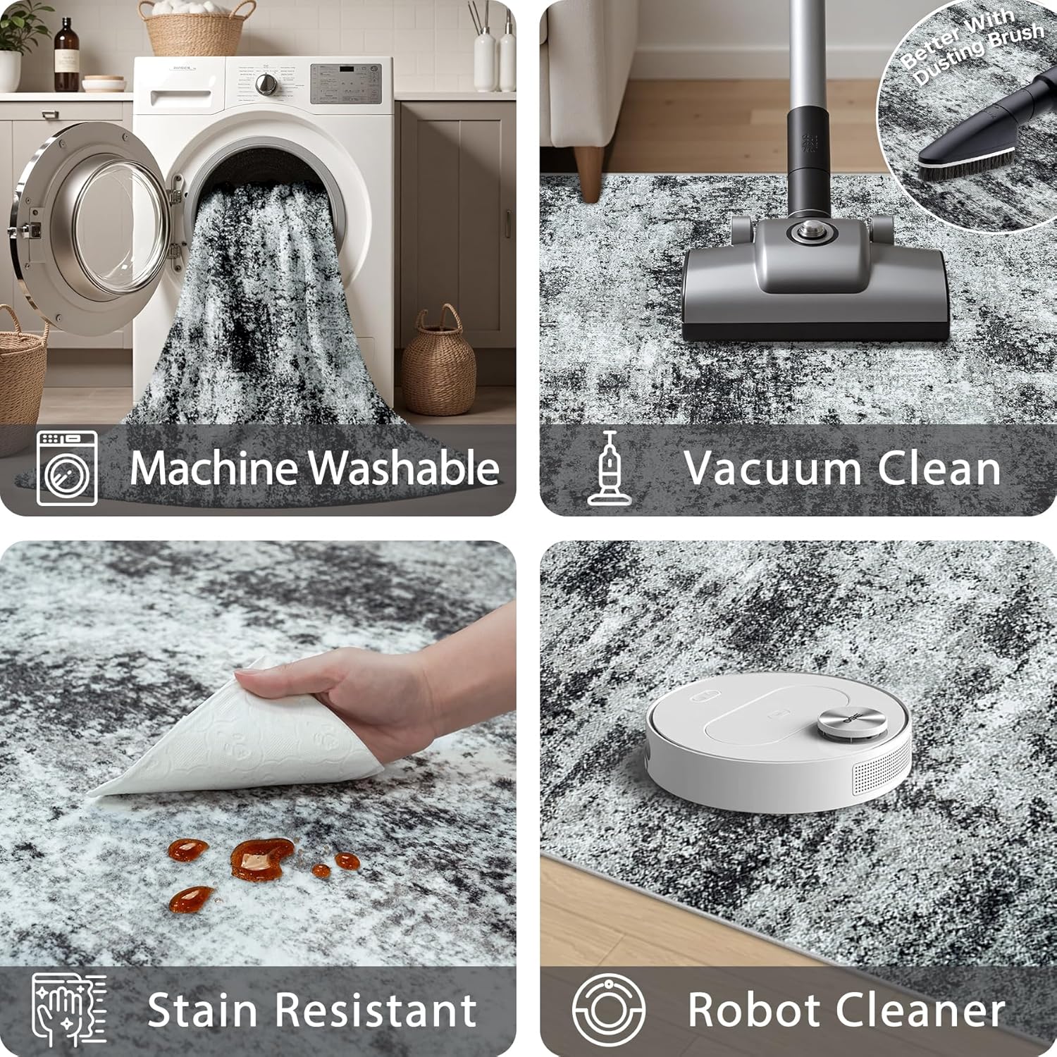 Area Rug Living Room Rugs: 5x7 Abstract Washable Rugs Ultra Soft Carpets with Non-Slip Backing Stain Resistant Carpet for Dining Room Table Bedroom Nursery Indoor Home Office Dark Black/Gray