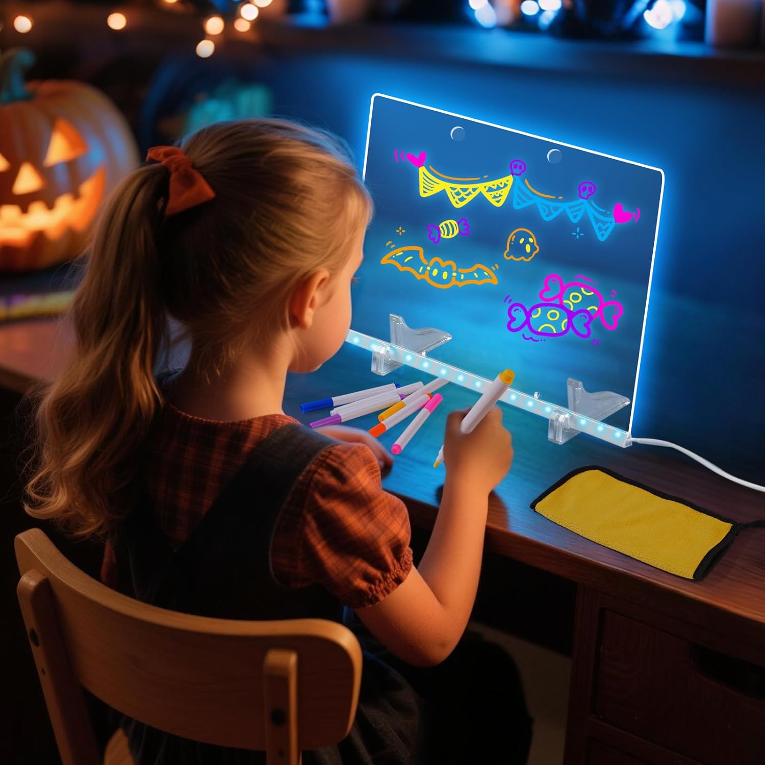 Lumiboard Led Drawing Board with 7 Colors,14"X10" Acrylic Dry Erase Board with Light, Include Adapter, Hanging Chain, Led Drawing Board for Kids with Stand,Birthday and Halloween Gifts for Kids