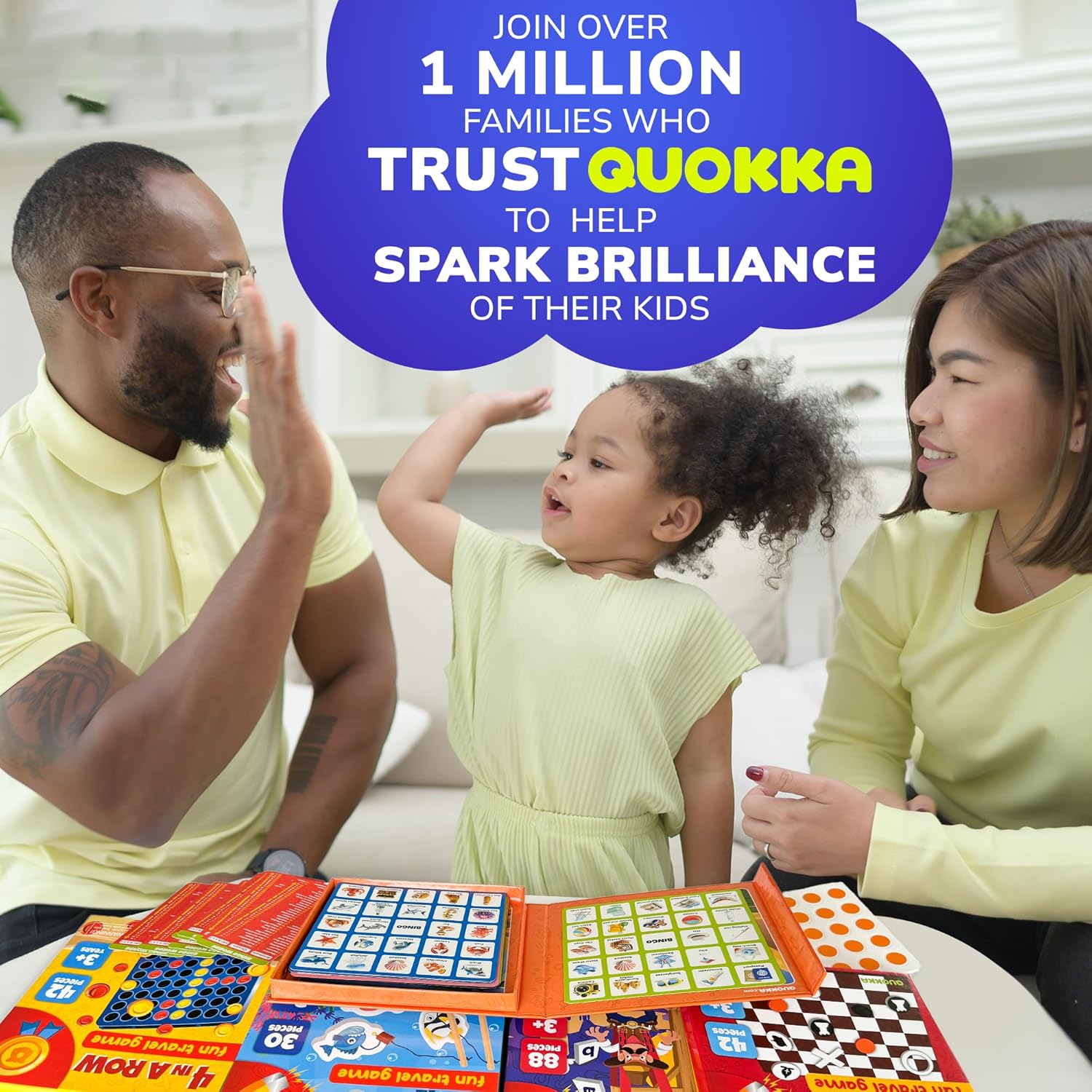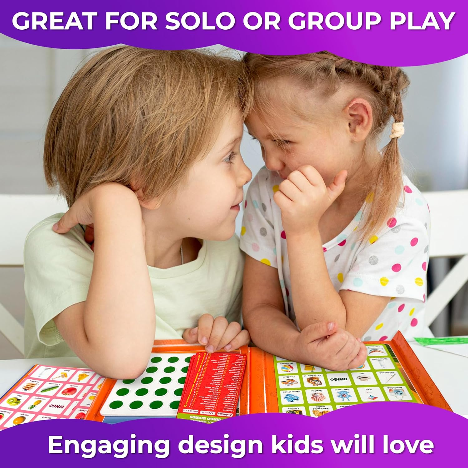 - BINGO FOR KIDS: for 2 players, but instead of numbers, there are 2 cards for 5 themes with an educational element; You pull out a card with a list of words, take turns and filling in the bingo cards; The first person to fill in 1 line completely wins