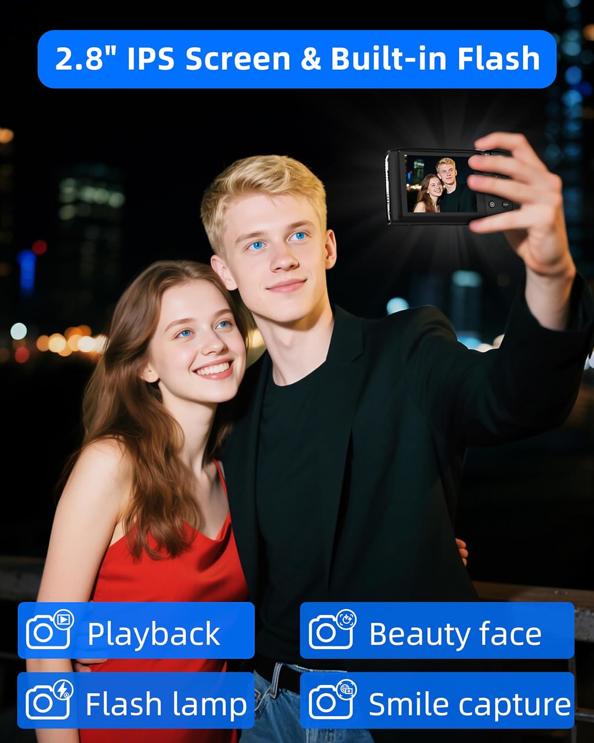 - 💡 2.8"LCD Screen & Built-in Flash: Shoot Anytime, Anywhere with our point and shoot digital cameras – Enjoy vibrant color and crisp image preview on the upgraded 2.8" LCD display. The built-in flash ensures great photos even in low light. With a built-in mic, your vlogs and recordings sound just as good as they look.
