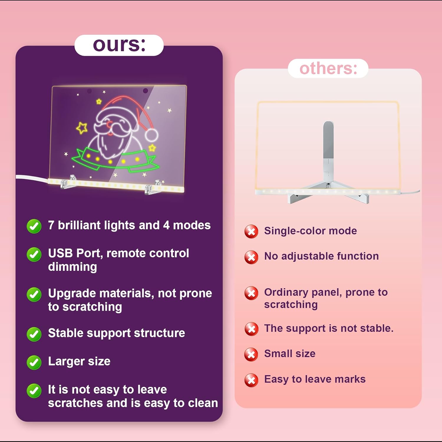 - 【Ideal Choice】As Christmas approaches, our 2025 Children's led note board for kids (includes colorful accessories, especially suited for girls) will enhance your festive atmosphere! Compared to other LED drawing boards, our product features a larger size, adjustable modes, and a more enjoyable user experience. It wipes clean easily after use and is simple to operate, helping you unleash your artistic talents!