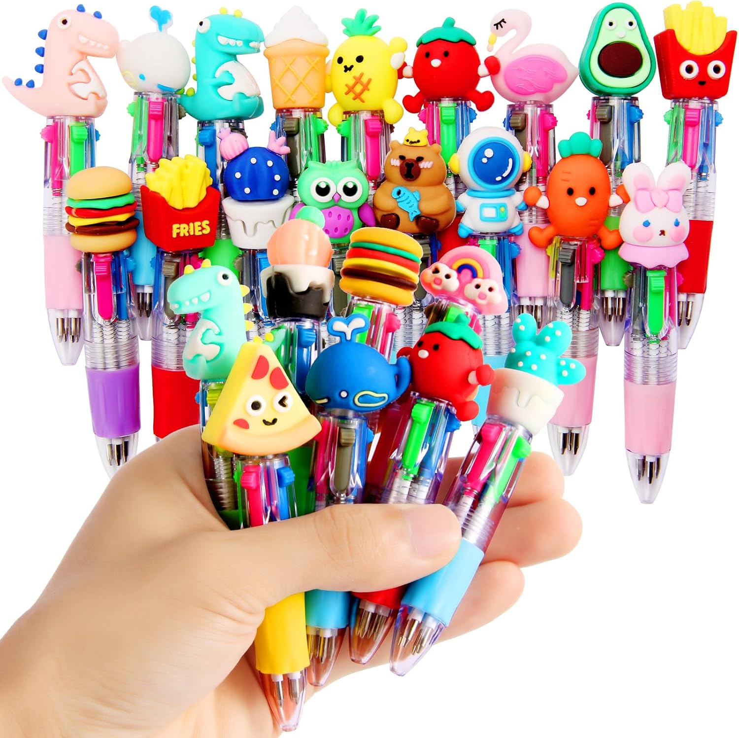 LiYiQ 25 Pcs Multicolor Pen in One Fun 4-in-1 Cute Pens Bulk Kawaii Cool Ballpoint Pens for Kids Fun Gifts (25)