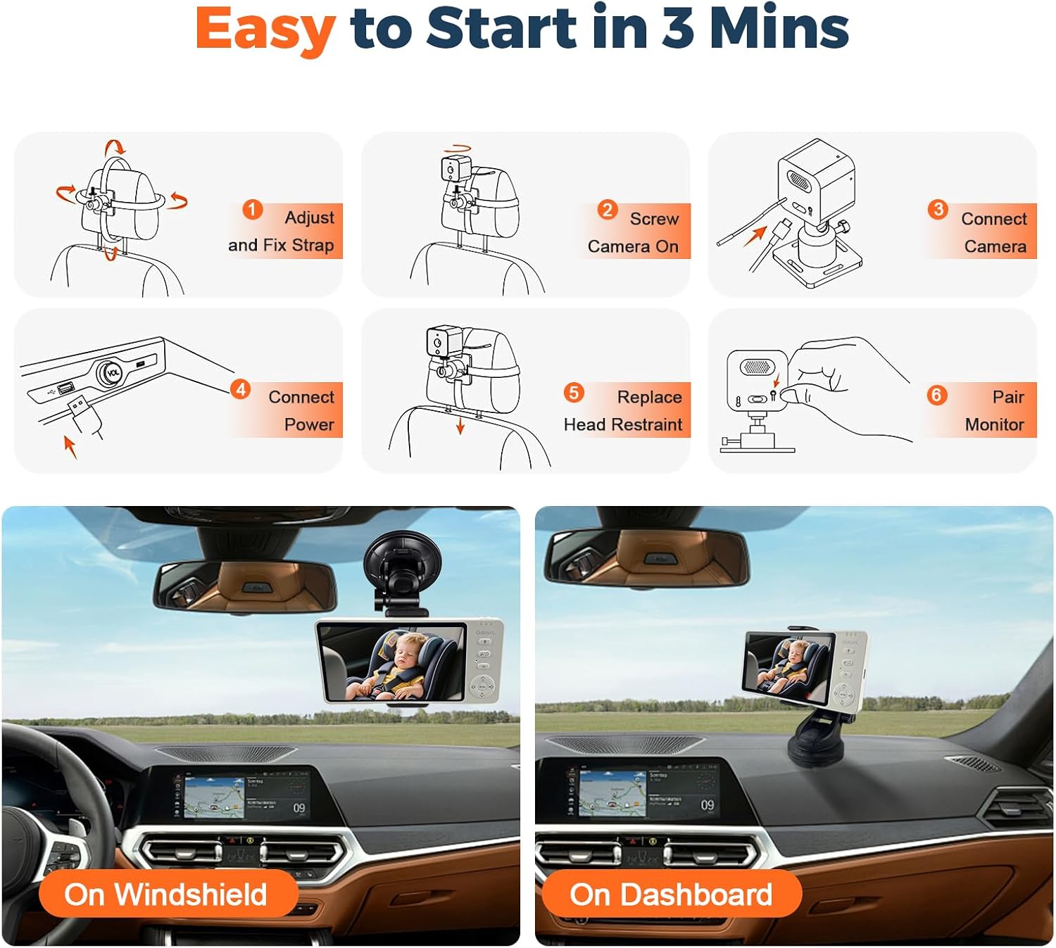 - [Multi-Scenario Car Companion] Essential for Modern Parenting.Perfect for SUVs, sedans, or RVs. Wide-angle lens tracks kids/pets effortlessly. Shockproof bracket handles bumpy roads. Streamlined design complements urban adventures and road trips alike - the ultimate baby shower gift.