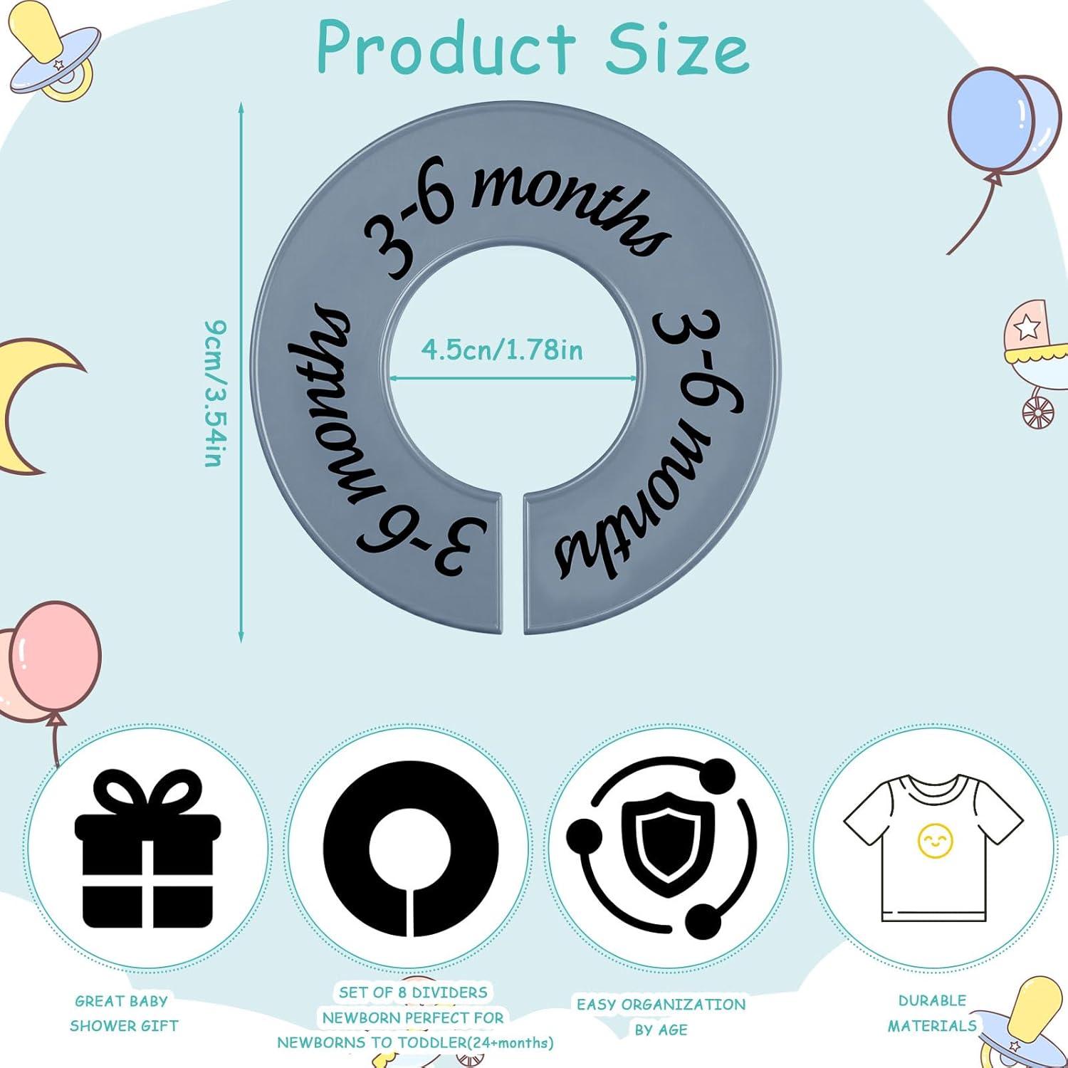 - Age Range Included: the set includes style for newborn, 0-3 months, 3-6 months, 6-9 months, 9-12 months, 12-18 months, 18-24 months, and 24+ months, helping you organize baby clothes by age and access them easily