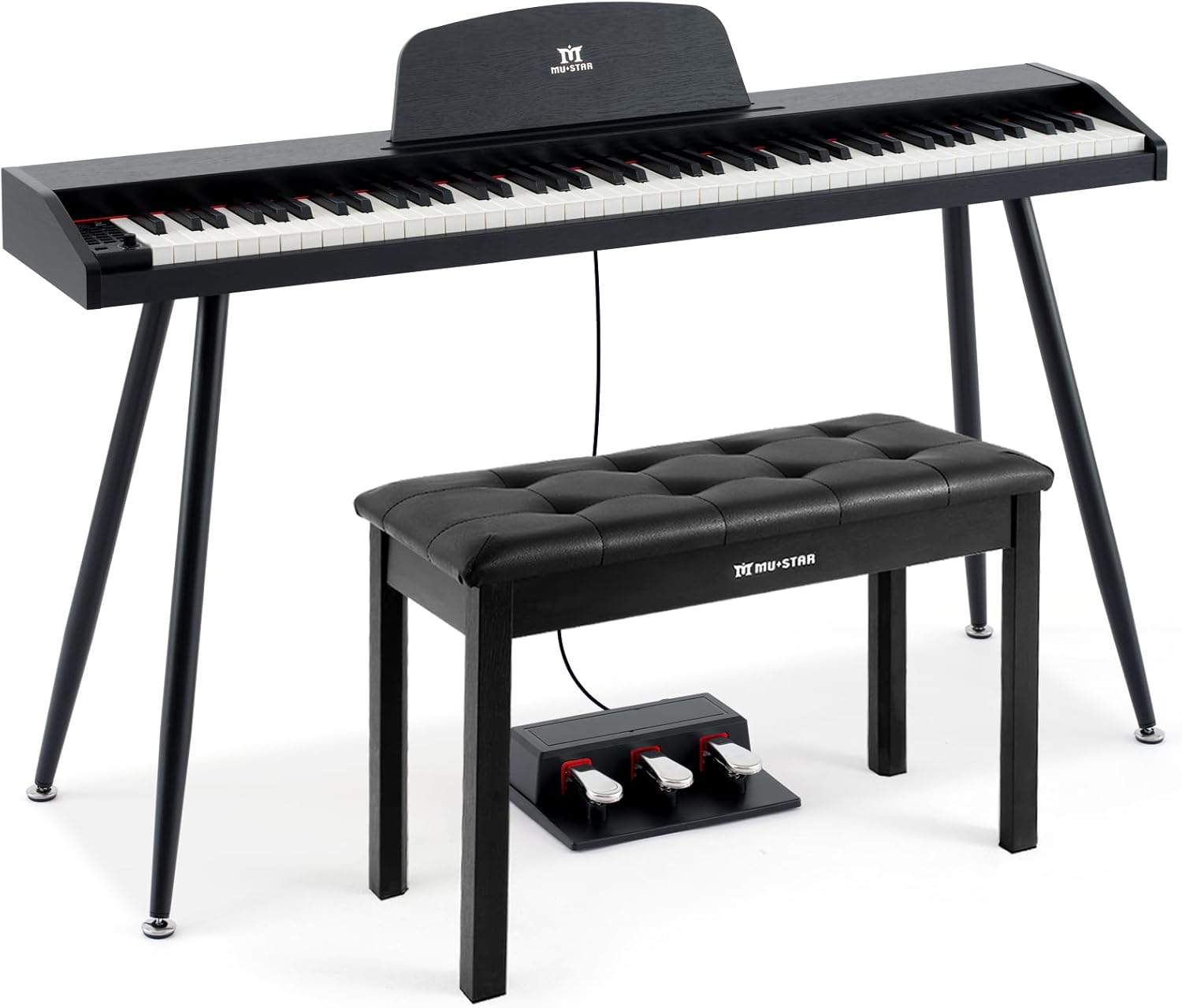 MUSTAR 88 Key Piano Keyboard with Piano Bench, Digital Piano 88 Semi Weighted Keys, Portable Electric Piano with Storage Stool, 3 Pedals, Built-In Speakers, USB/MIDI, Black