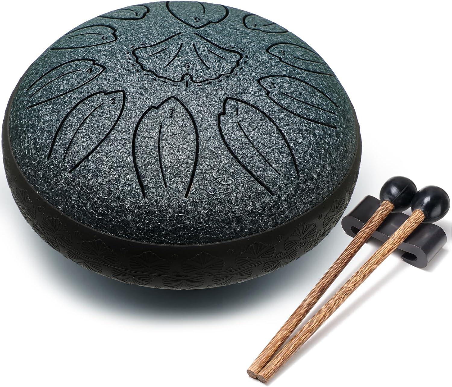 - π Unique Craftsmanship: The steel tongue drum is made of high quality alloy material, Drum body is full and round, and the drum surface sound tongue is shaped by lotus petals. Drum tongue is precision cut and strictly hand-modulated, The tone is very stable. With high surface finish and non-fading painting process, Has better corrosion resistance and heat resistance. The tongue drum is a well-made percussion instrument