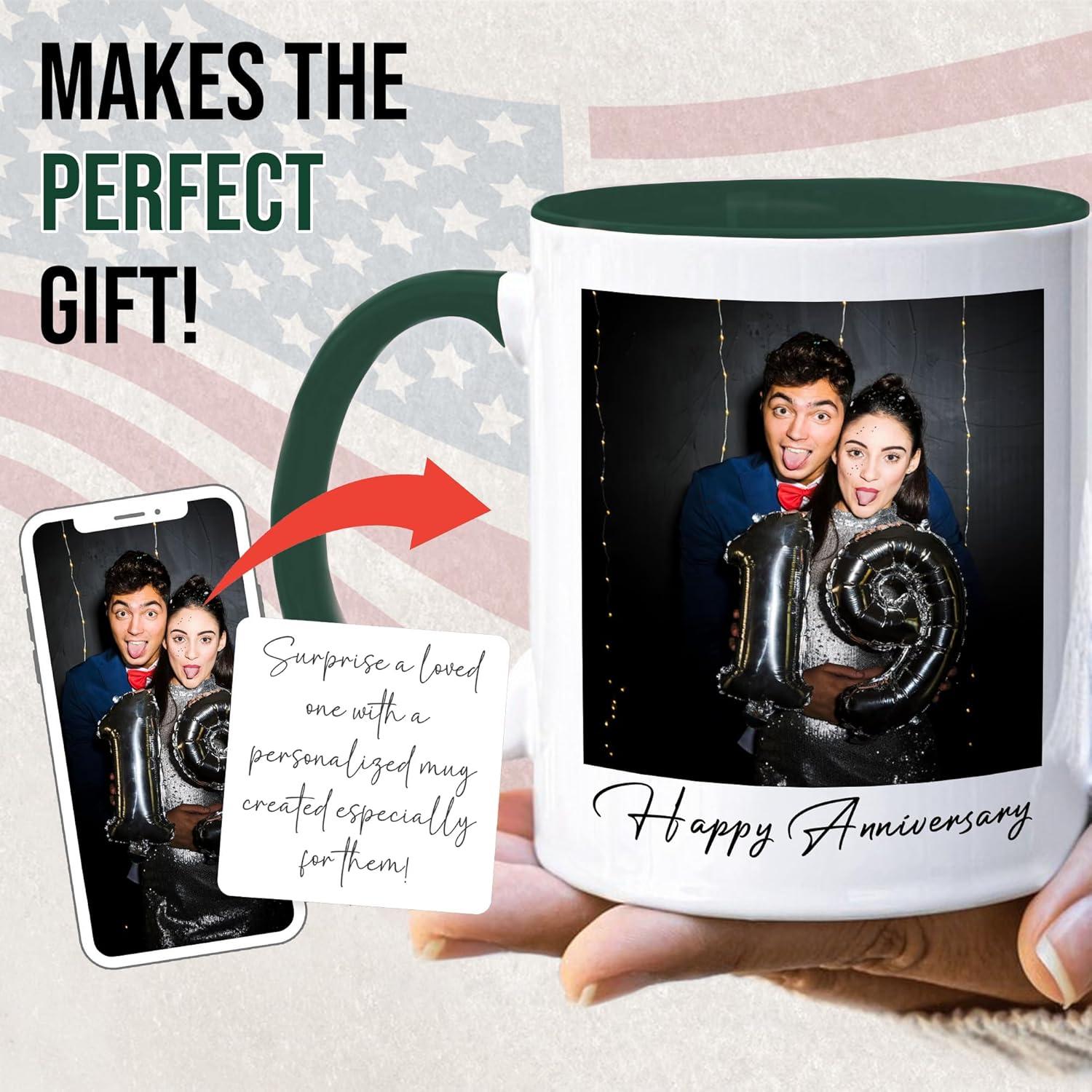 Custom Mug Upload Your Picture Personalized Coffee Mug with Photo Text Name Customized Cup Unique Ideas Gifts for Men Women Mom Dad Girlfriend Boyfriend Friend Family (Dark Green, 15oz)