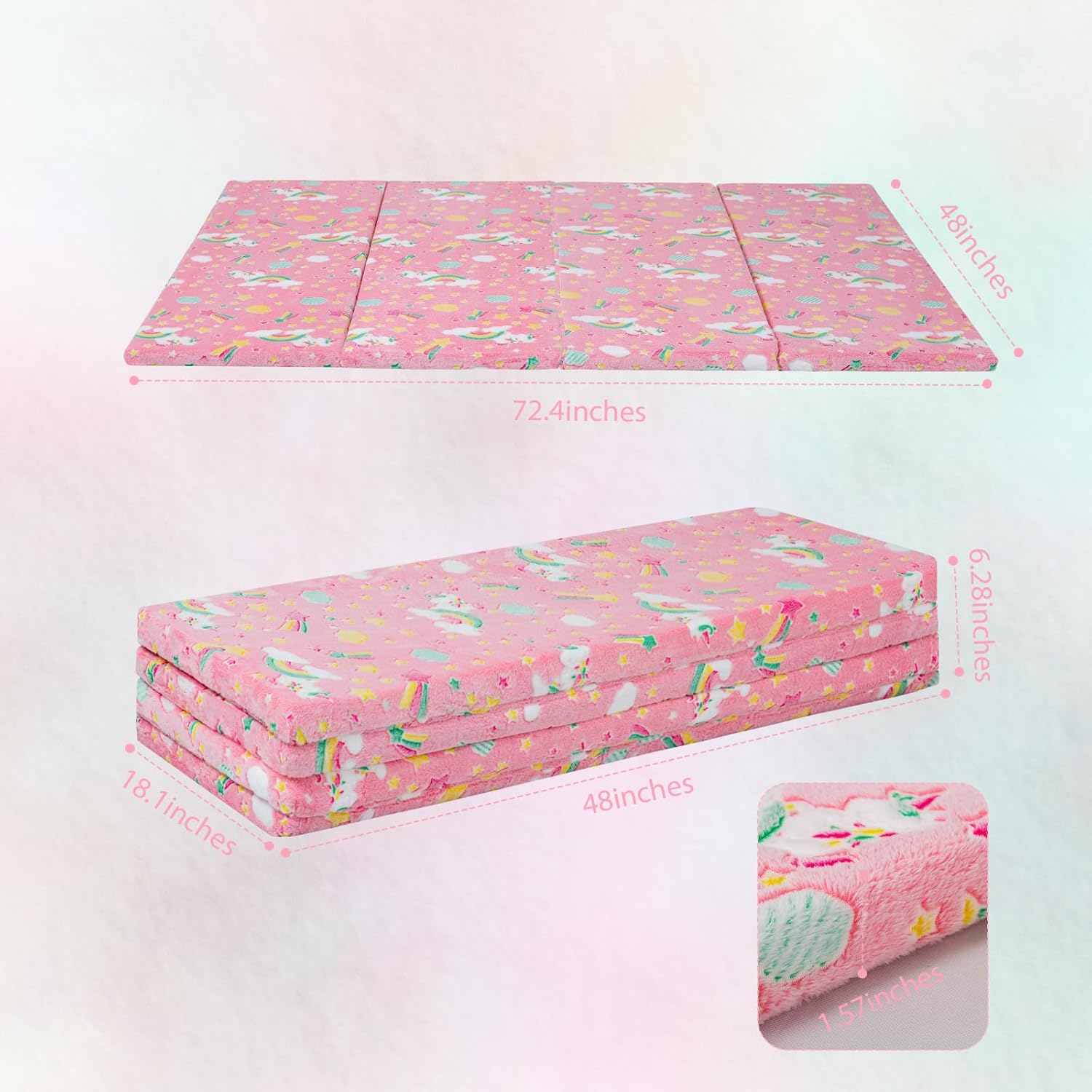 MeMoreCool Kids Floor Futon Mattress Large 6x4 FT, Thicken Foam Tatami Mattress for Children Play Area, Foldable Sleeping Pad Crawling Tatami Mat for Playroom, Pink Rainbow