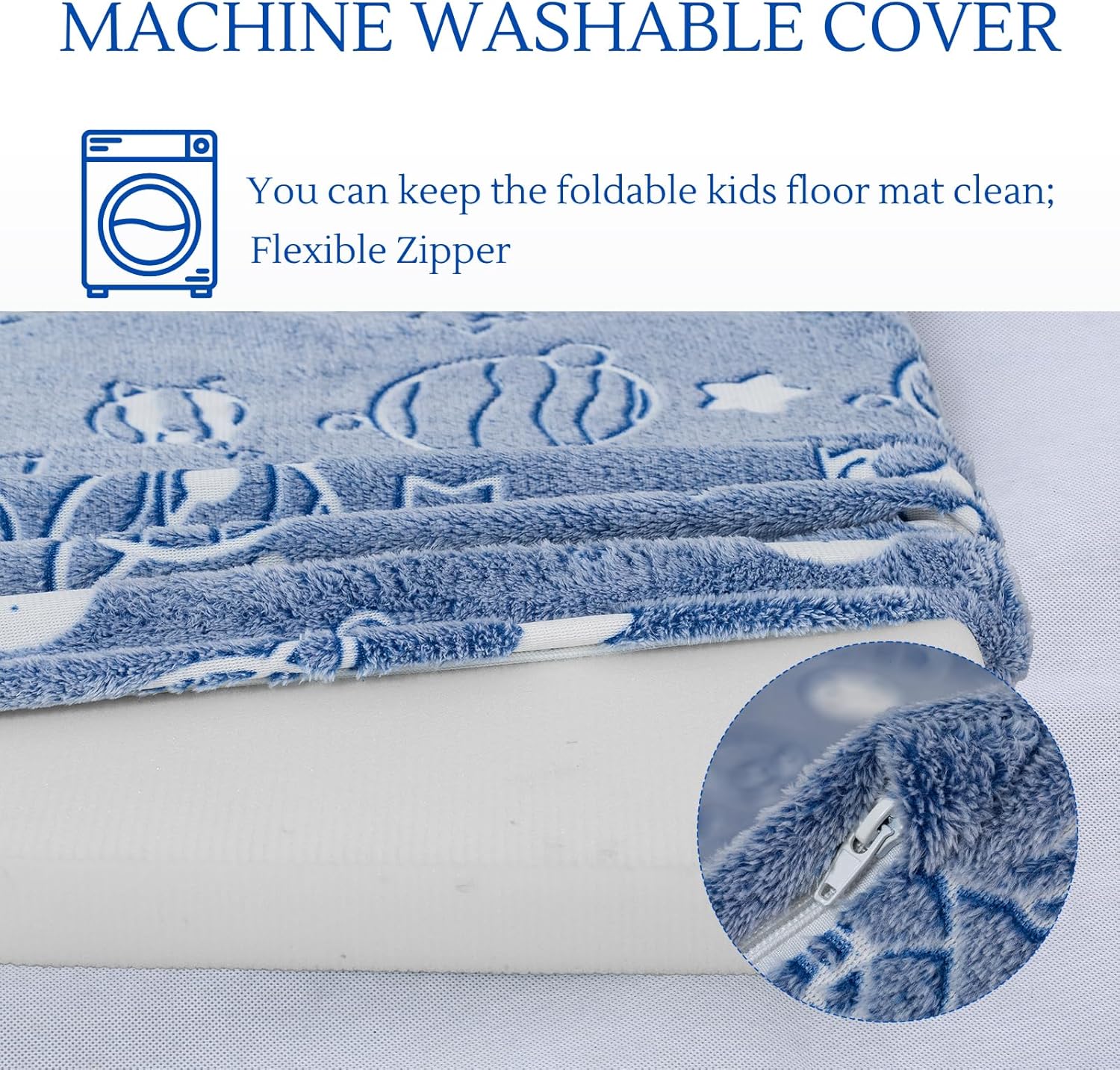 - 2-in-1 Design: Large cushioned surface & foldable design. Folding floor futon provide a soft cushioned surface for kids to crawl and play on. The floor mattress is convenient for parents, because kids floor mat is foldable and lightweight