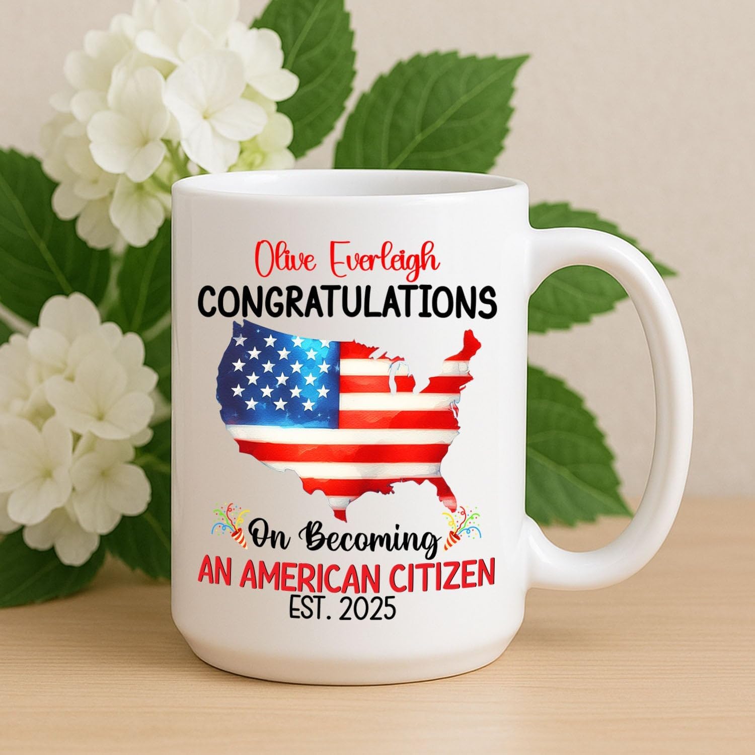- ✨ DURABLE MATERIAL: This Congrats On Becoming An American Citizen white mug is crafted from premium ceramic with a glossy white finish, offering both durability and style. Its solid construction and high-quality feel make it a reliable choice for daily use or thoughtful gifting.