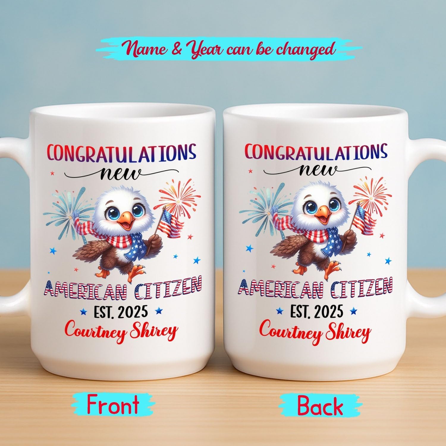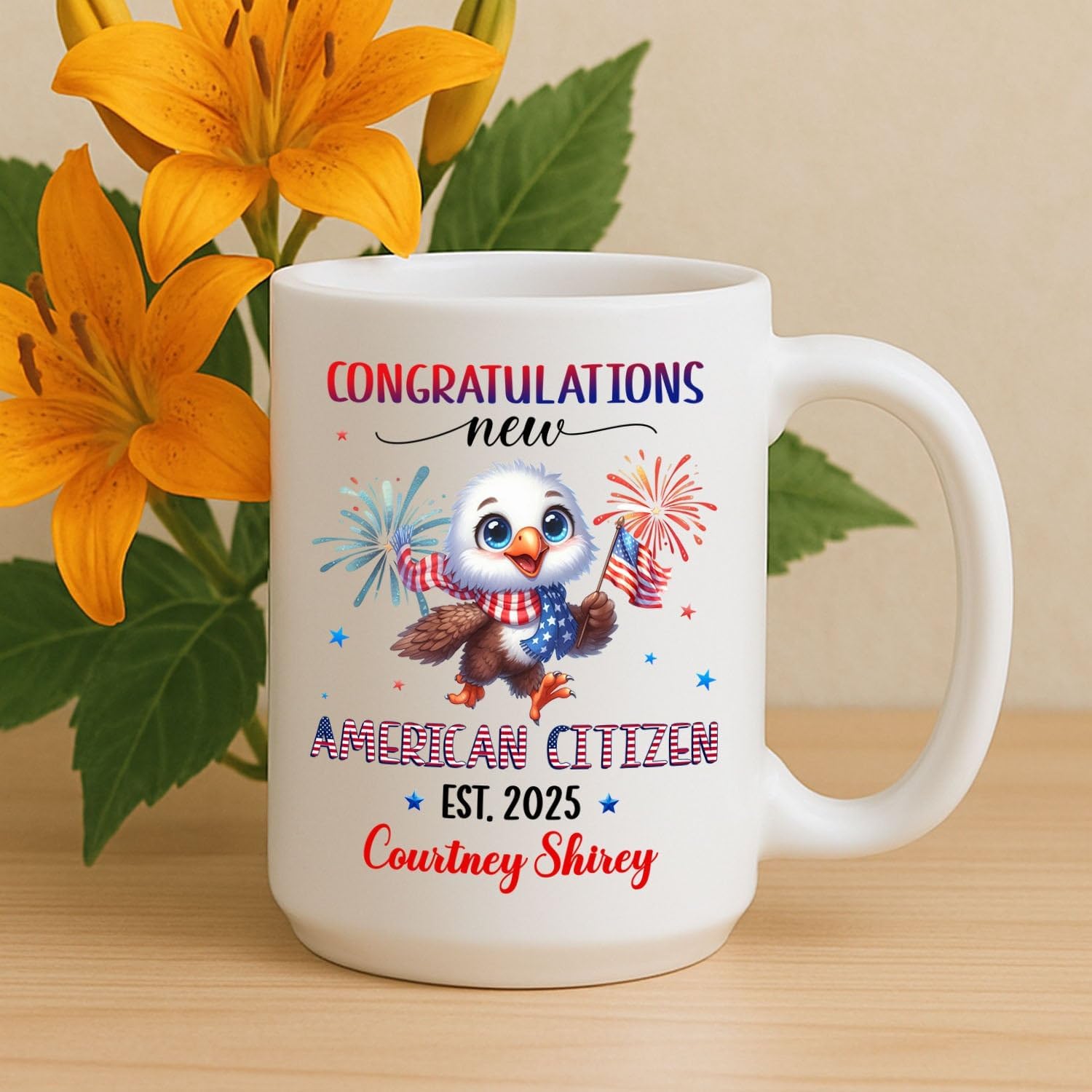 - ✨ DURABLE MATERIAL: This Congratulations New American Citizen white mug is crafted from premium ceramic with a glossy white finish, offering both durability and style. Its solid construction and high-quality feel make it a reliable choice for daily use or thoughtful gifting.