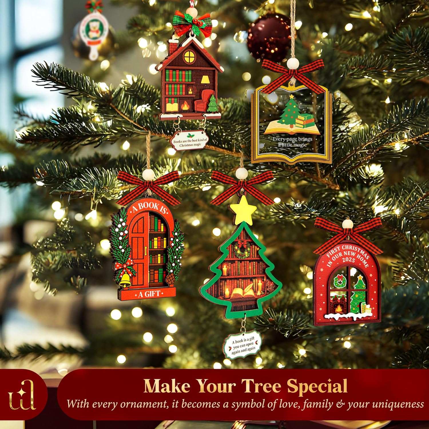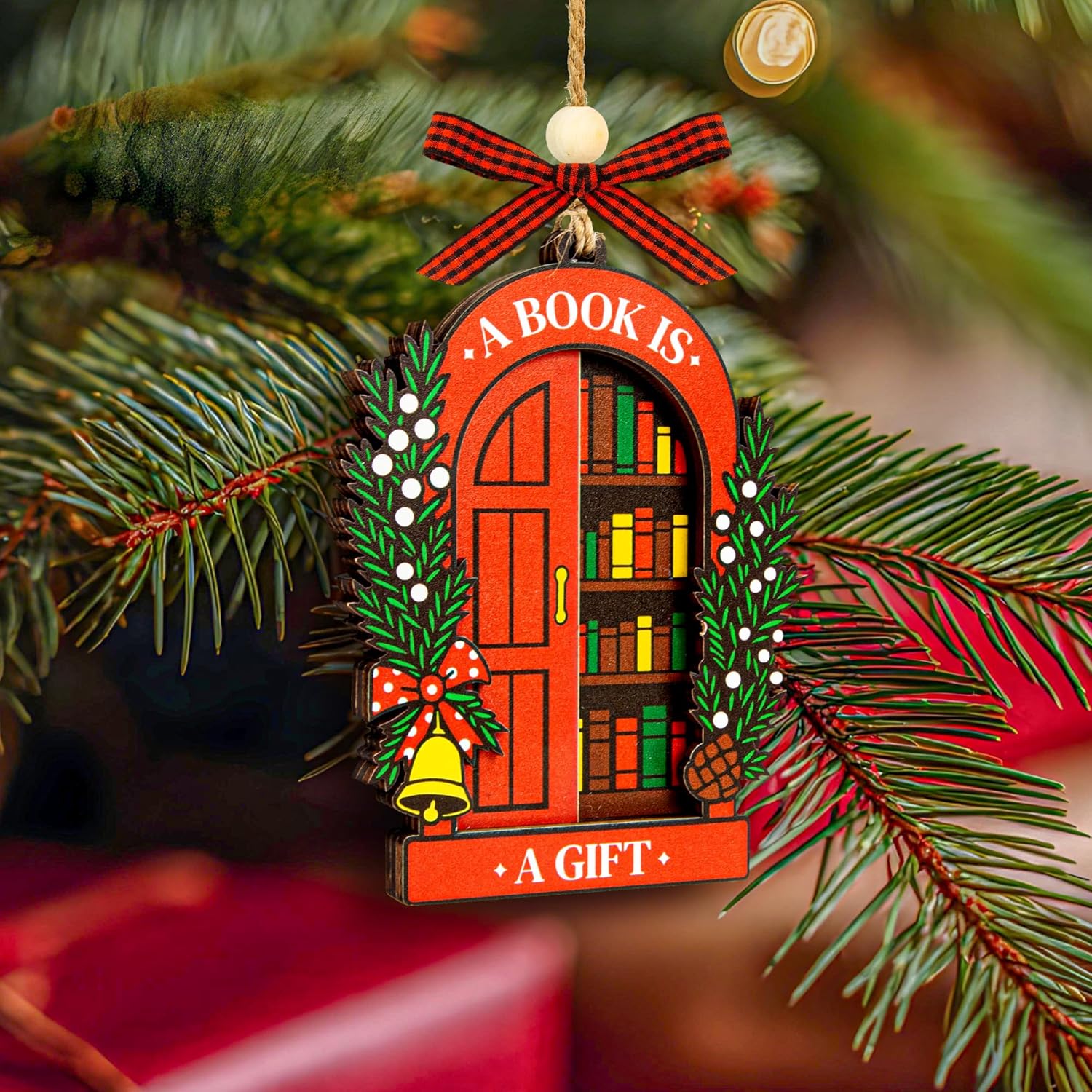 - Careful Packaging: Securely boxed so it arrives ready to hang or wrap with your greeting card. Display on the tree, tie to a gift stack, or stage with books as festive christmas decor for bookshelf—a door-shaped keepsake book lovers will enjoy year after year.
