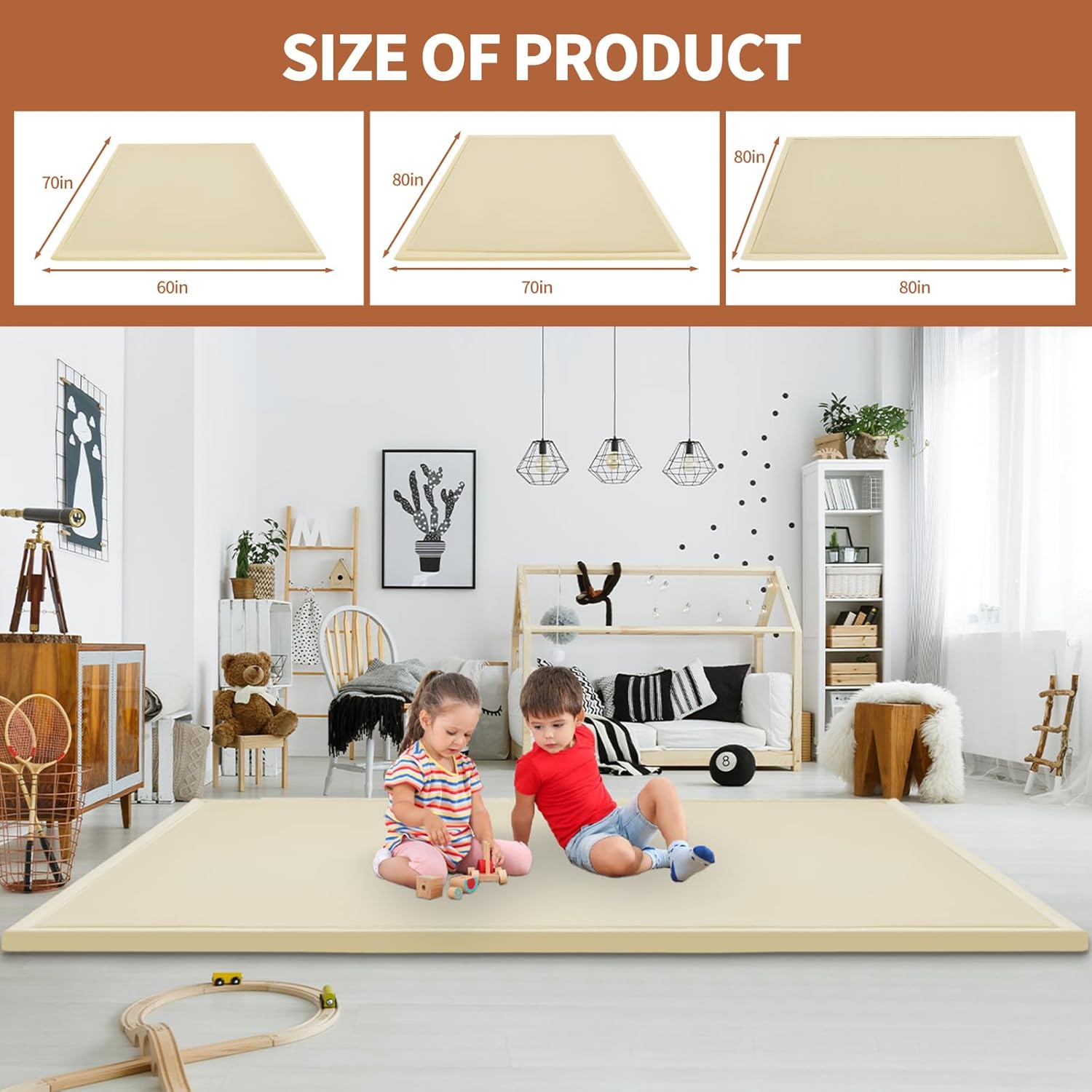 Baby Play Mat for Floor - 1.4" Thick Memory Foam Rug, 70"x59" Playpen Tummy Time Mat, Soft Velvet Nursery Rug, Large Padded Crawling Mat, Cushioned Pads for Playroom Toddlers, Infants, Yoga, Tatami
