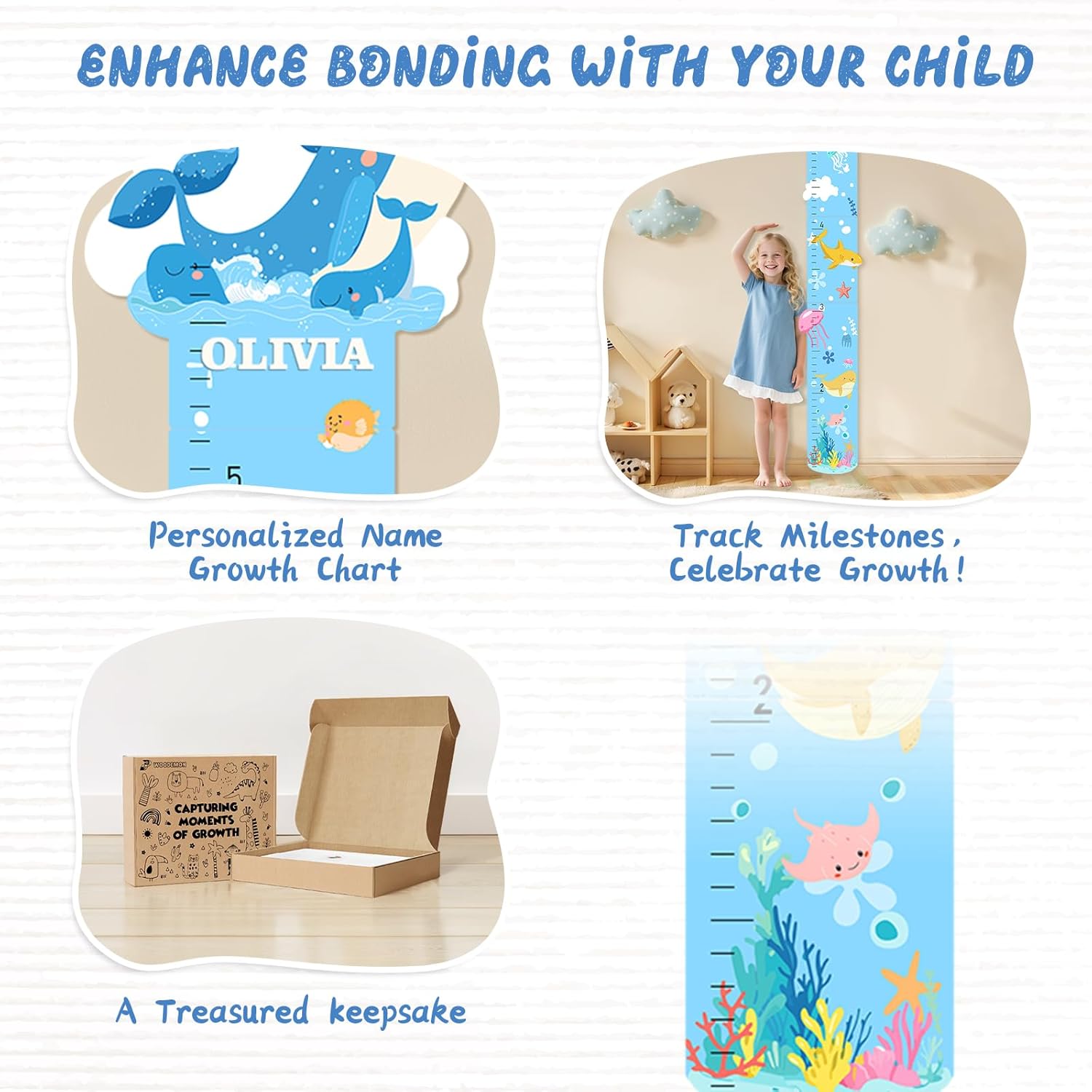 - Personalized Name Growth Chart: The height ruler wall tape can customize the name, measurement scale (centimeters or inches) for a personal touch, attracting the baby's attention. Kids height wall chart creates precious childhood memories, making measuring height interesting and not boring.