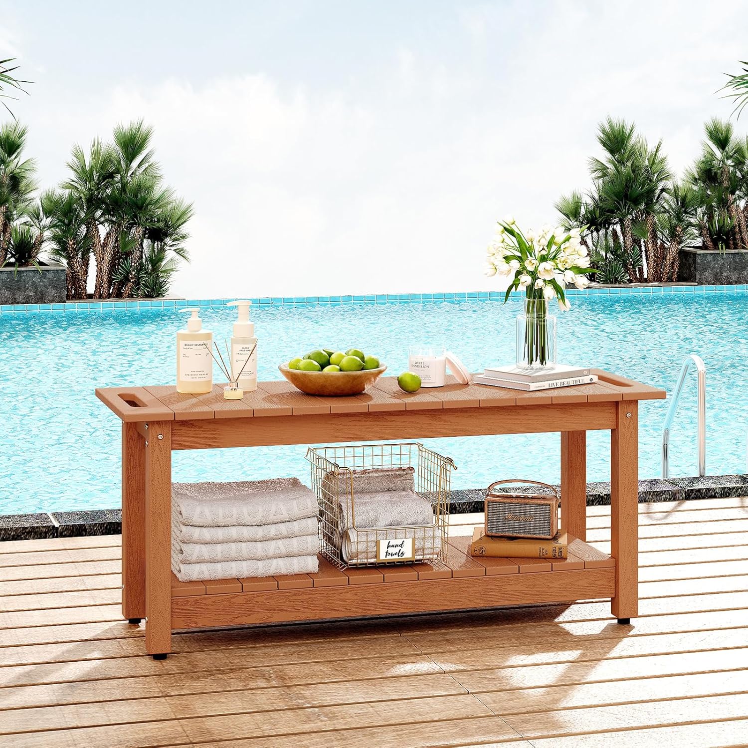 41" Shower Bench, Waterproof Poly Lumber Shower Stool for Shaving Legs, Shower Chair Seat Holds up to 400lbs, Bathroom Bench for Inside Shower, Non-Slip (Brown)